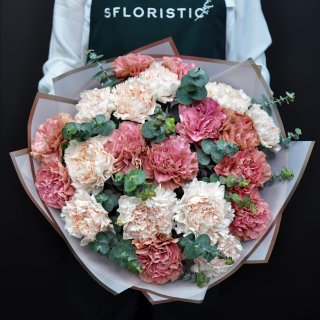 Букет из Диантуса Микс цветов и Эвкалипта «Пудровый Диантус»