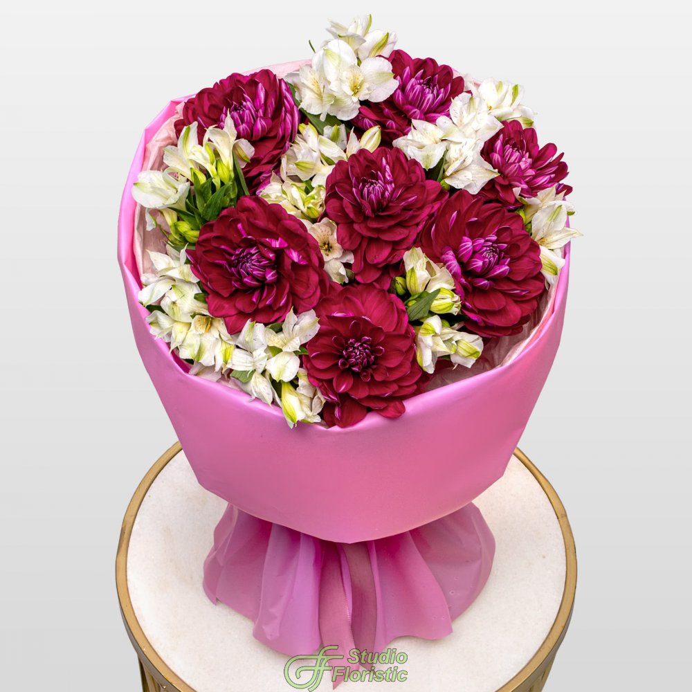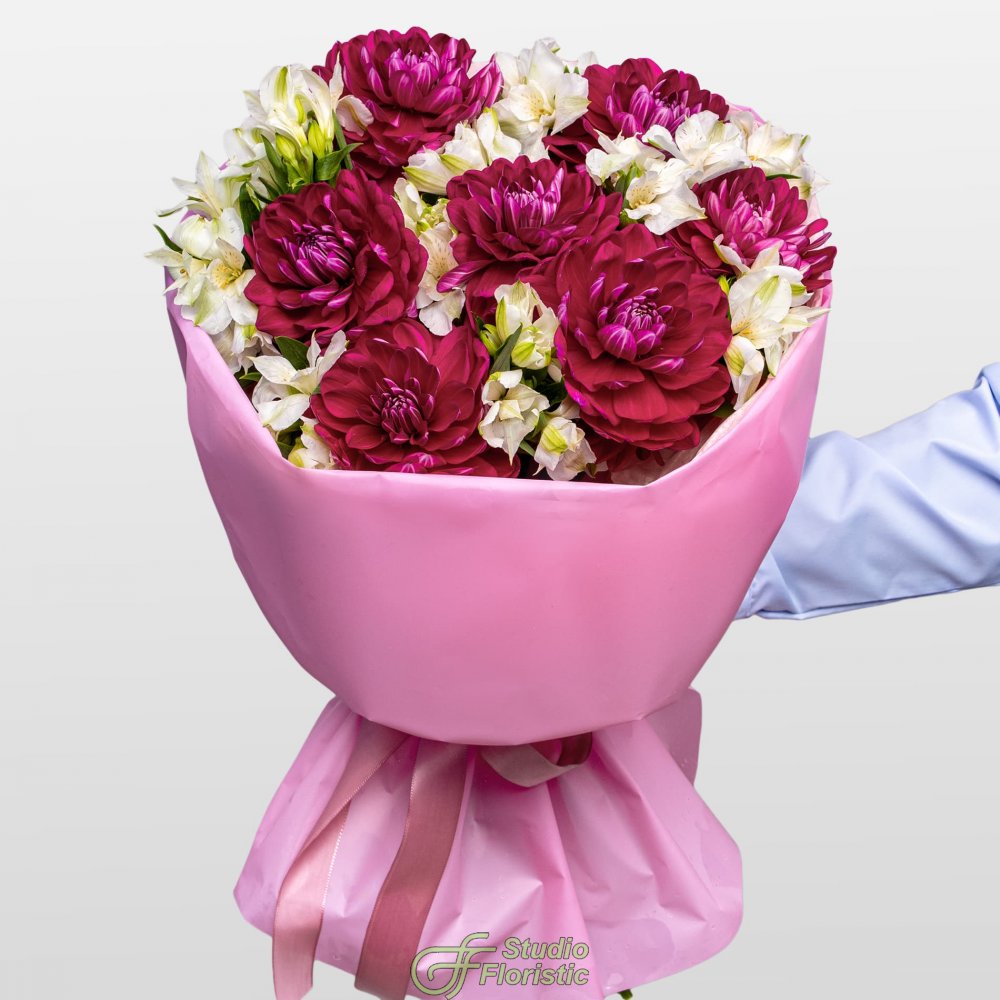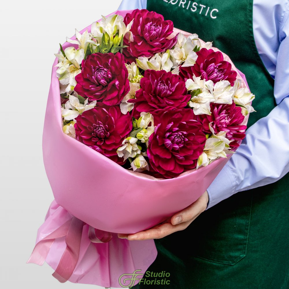 Букет из Георгин и Альстромерий «Ягодный Пломбир»