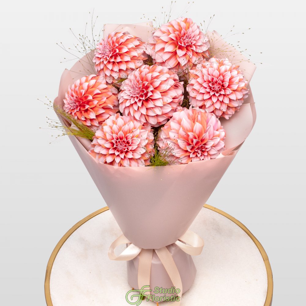 Георгин (7шт.); Паникум; Упаковка; Атласная лента | 3499 | 5649 |