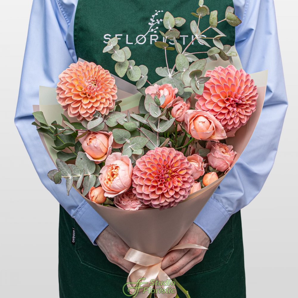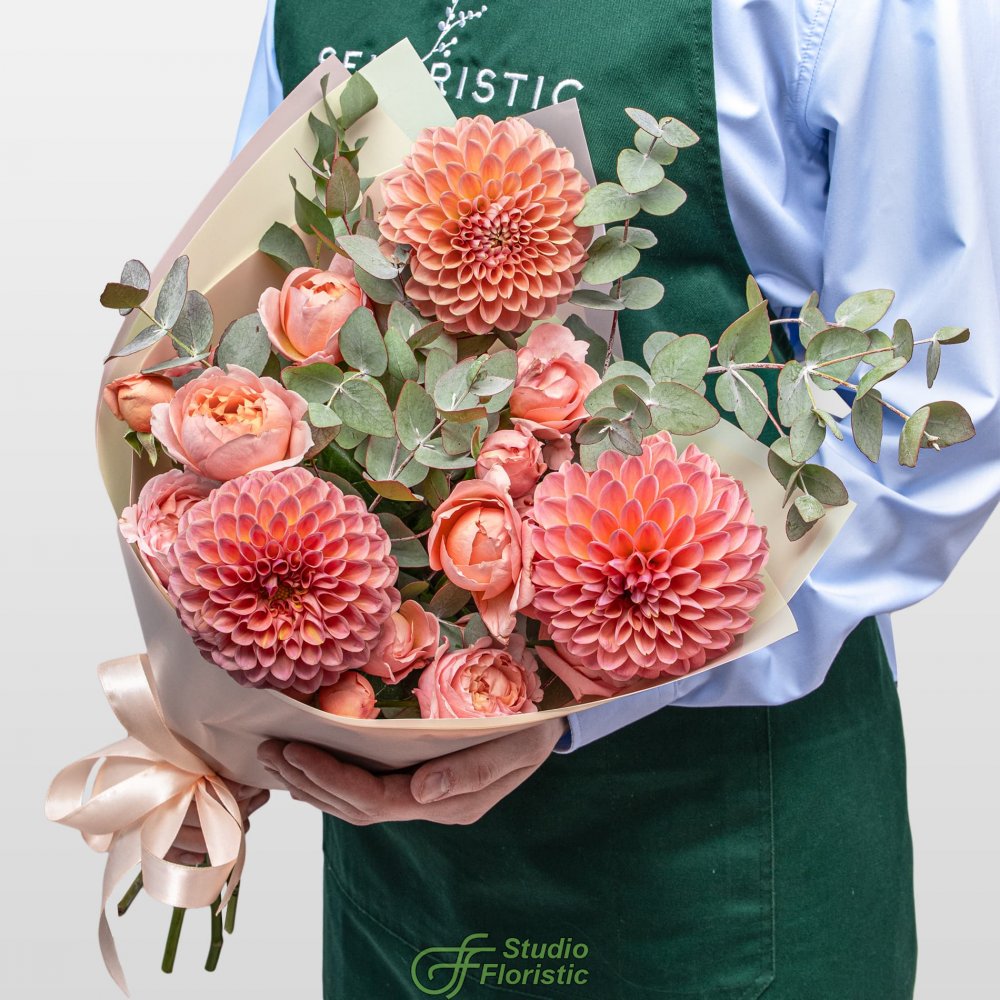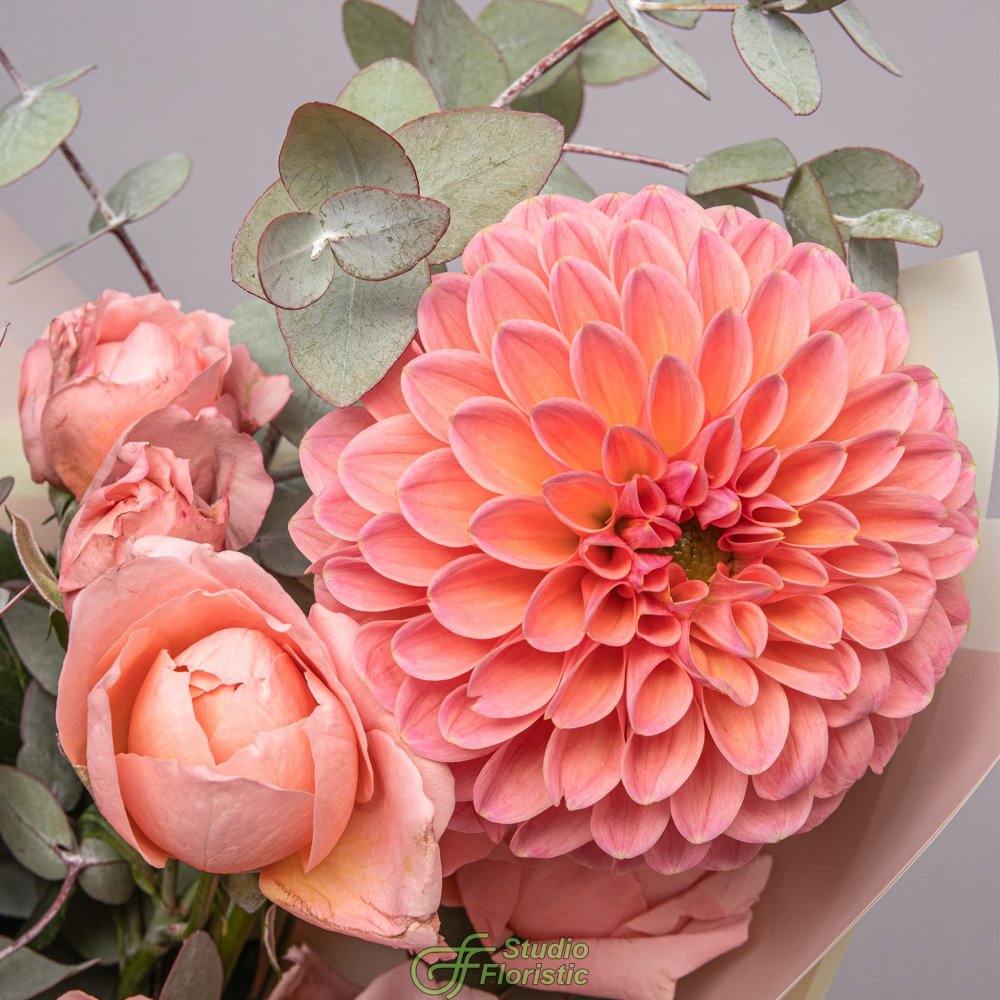 Букет из Георгин и Пионовидных Роз «Теплое Объятие»