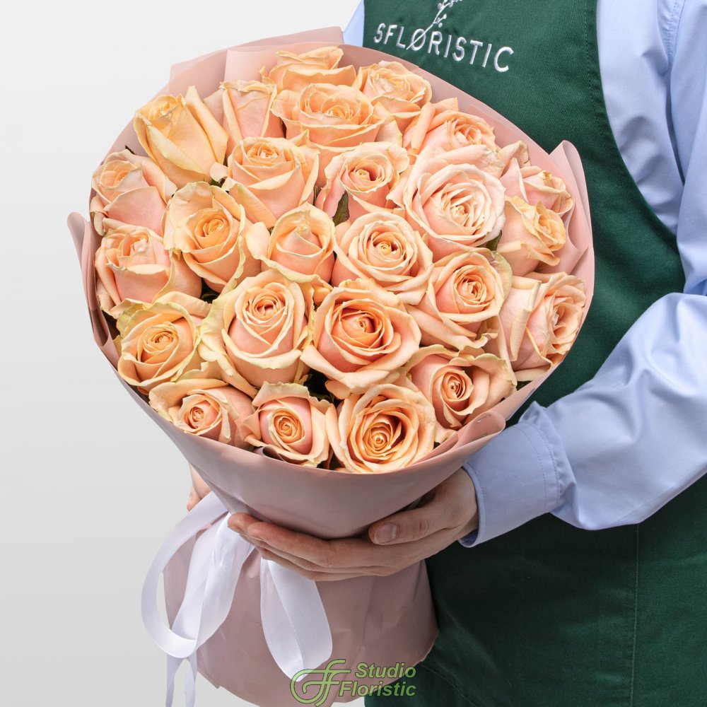 Букет из персиковых Роз Талея 25 шт «Сладкий Момент»