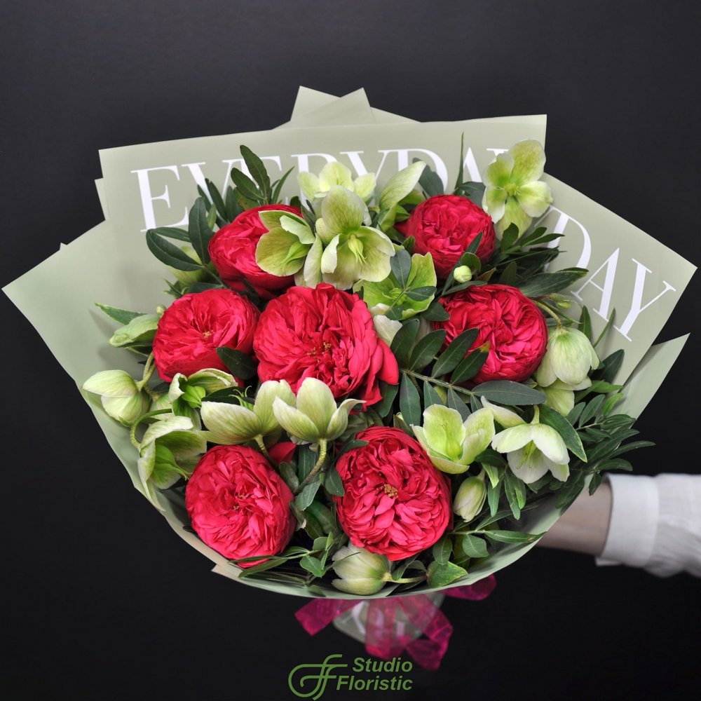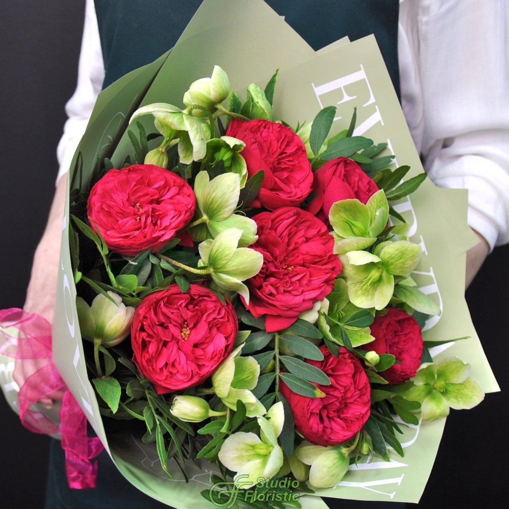 Букет из Рэд Пиано и Хелеборуса «Лаймовый коктейль»