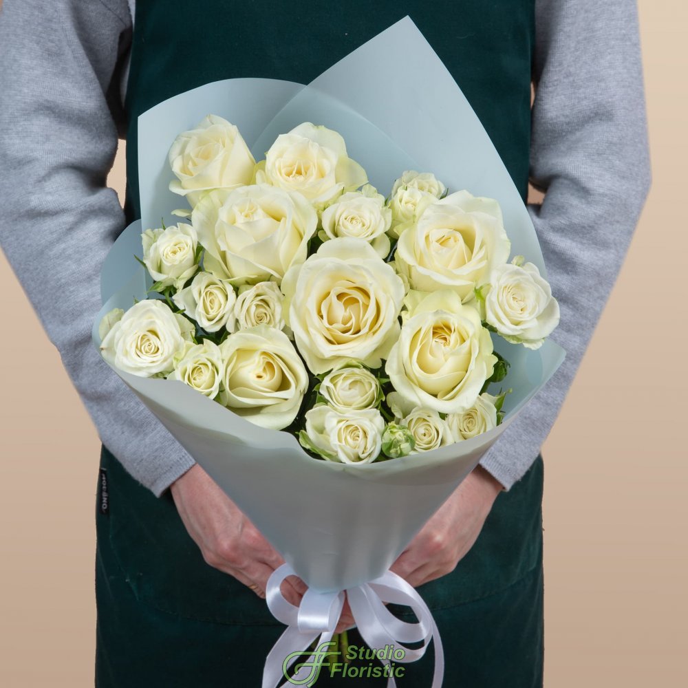 Роза кустовая (3 шт.); Роза 50см (7 шт.); Упаковка; Атласная лента | 2199 | |