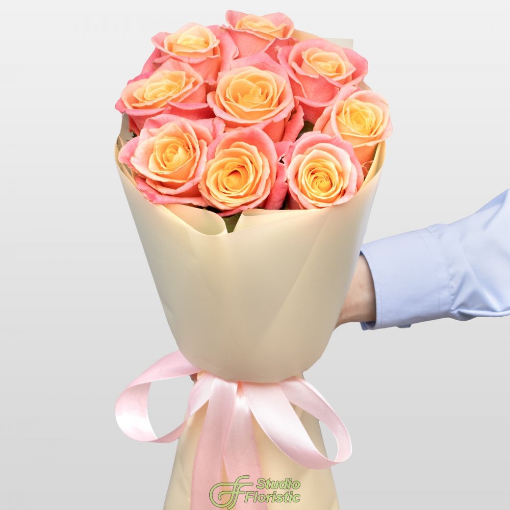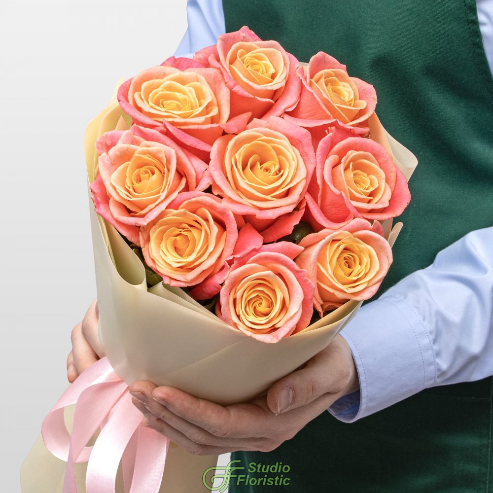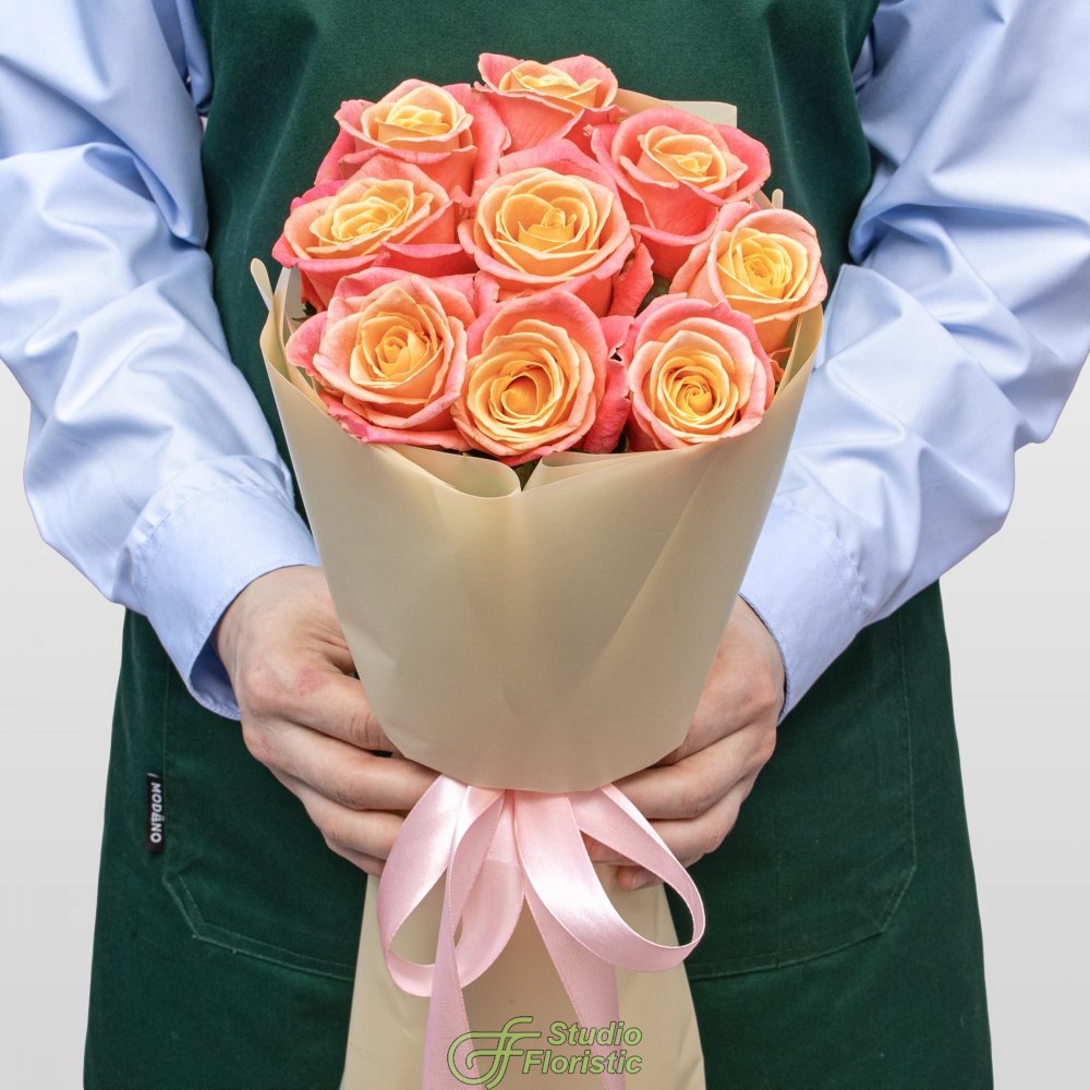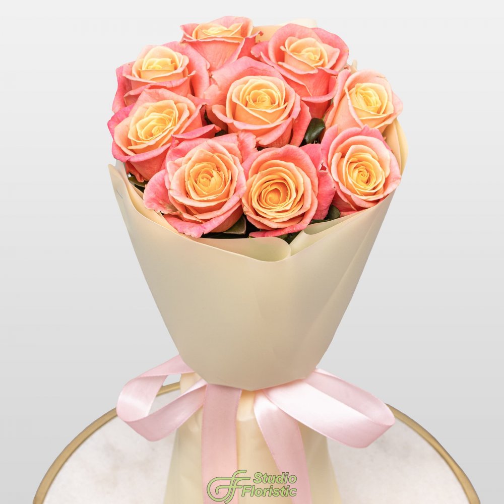 Букет из Роз Мисс Пигги 9 шт «Нежный Огонек»