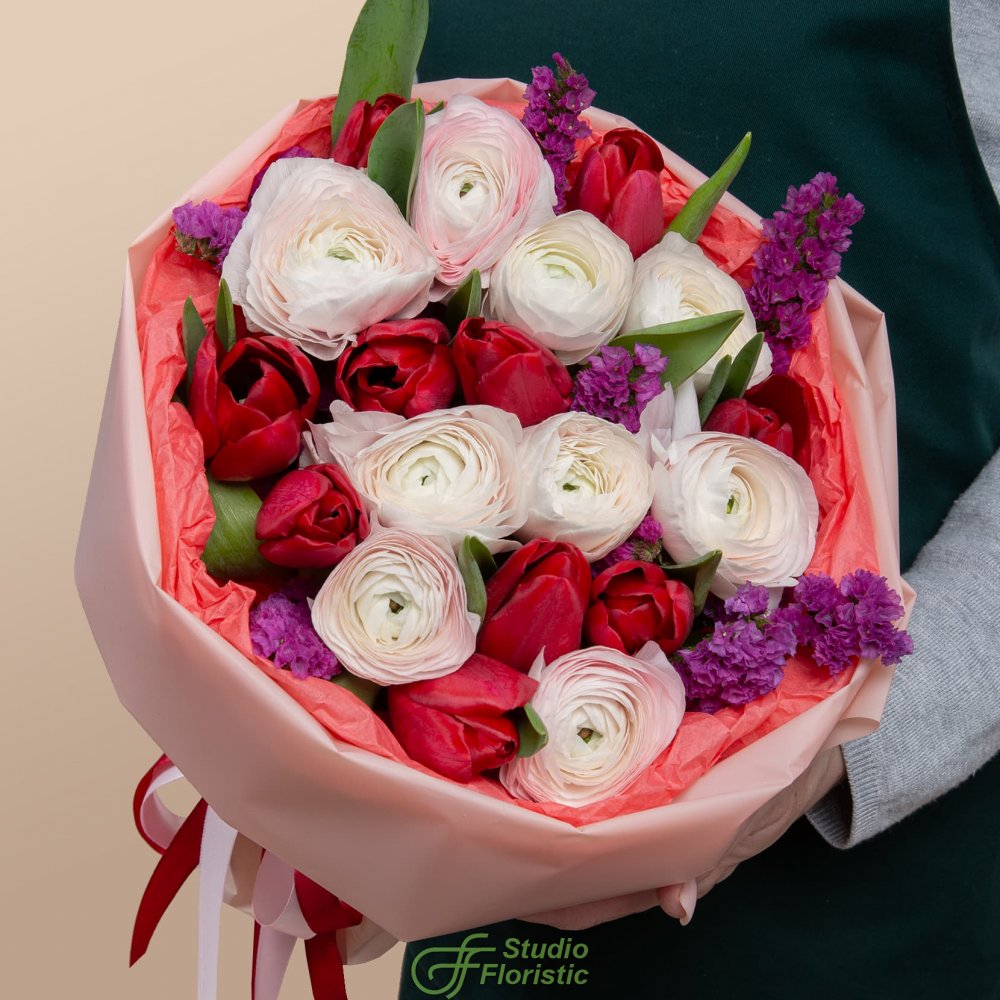 Букет из Тюльпанов и Ранункулюсов «Стихия любви»