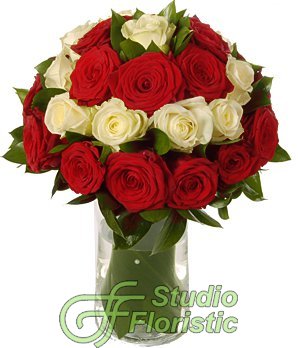 Розы Grand Prix (21 шт.); Белые розы Avalanche (12 шт.); Рускус (6 шт.); Аспидистра (3 шт.) | 5199 | |