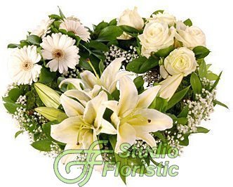 Сдержанное изящество и непорочная чистота композиции Траурный венок, обрамленного сочной строгой зеленью – свидетельствует о вечной любви, которая живет в сердце и после утраты близких. Печальная композиция из белых роз и гербер, дополненная светлыми лилиями без слов поведает о вашей безбрежной печали и искренней скорби по усопшему.