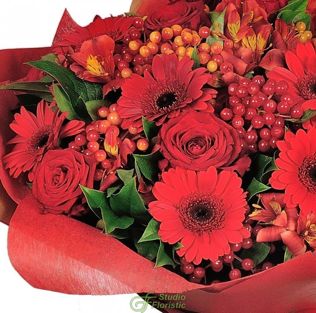 Роза (5 шт.); Альстромерия (5 шт.); Гермини (6 шт.); Калина (3 шт.); Упаковка | 3649 | |