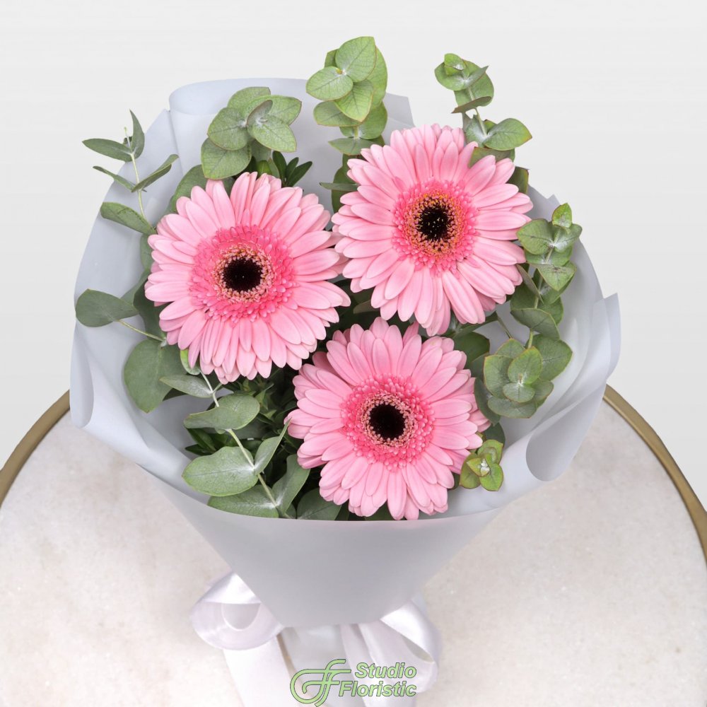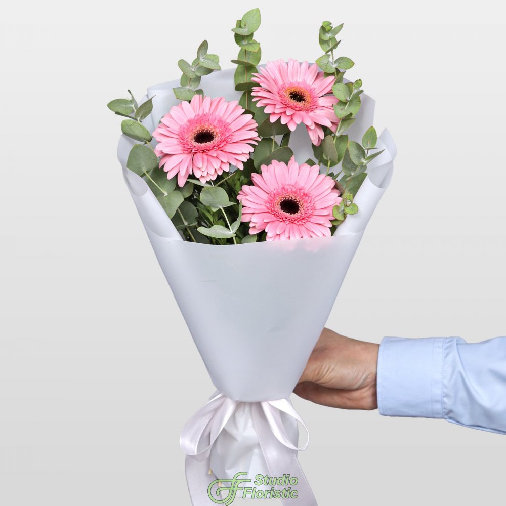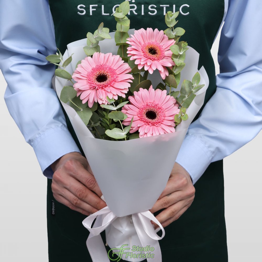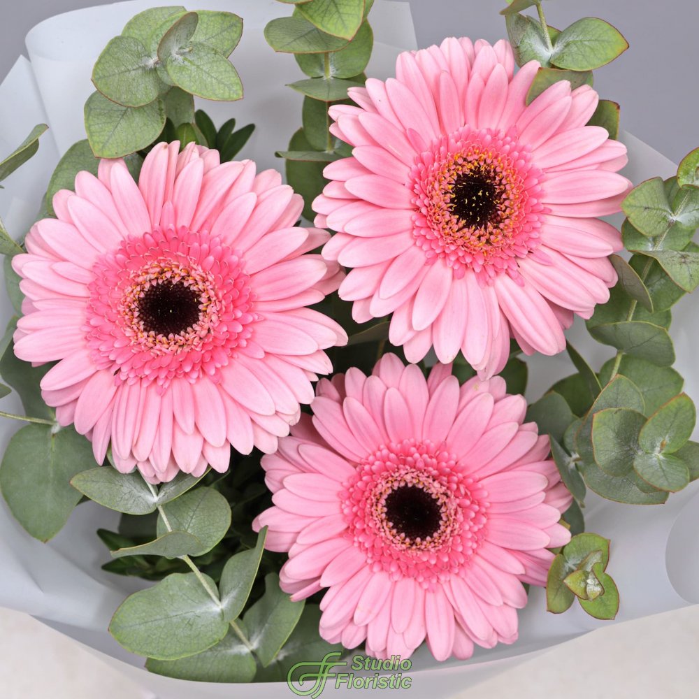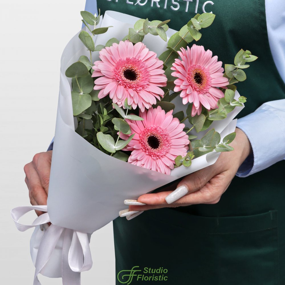 Букет из Гермини и Эвкалипта «Розовая мистерия»