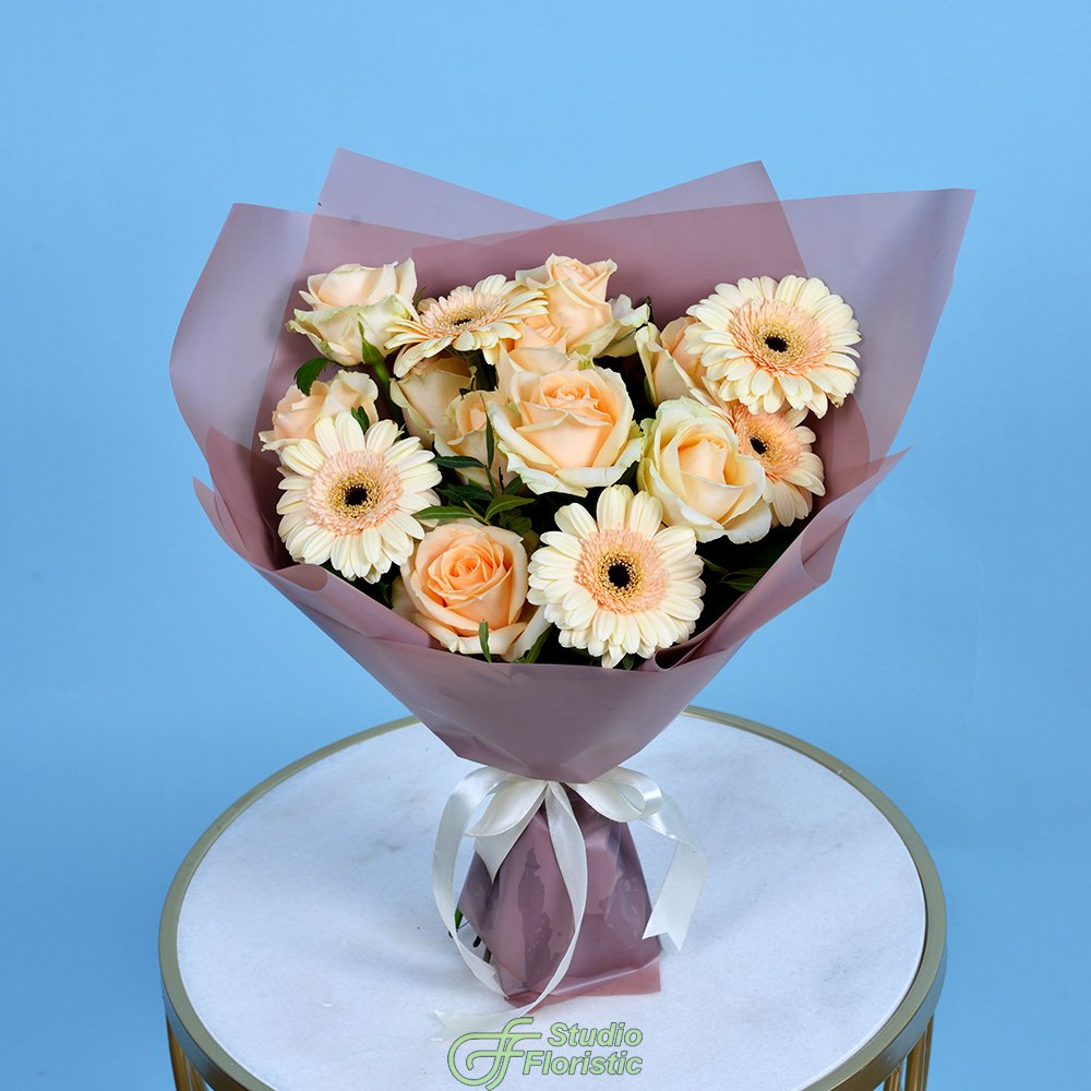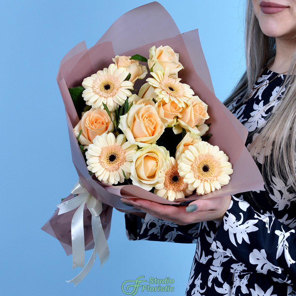 Сборный букет из герберы и Роз 60 см "Гертруда"