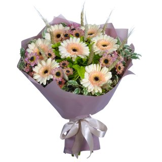 Гермини (7шт.); Хризантема Сантини (6шт.); Чойсия (2шт.); Колосья пшеницы (7шт.); Питоспорум; Упаковка | 3399 | 5099 |