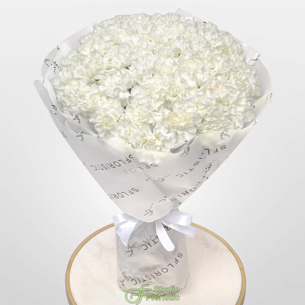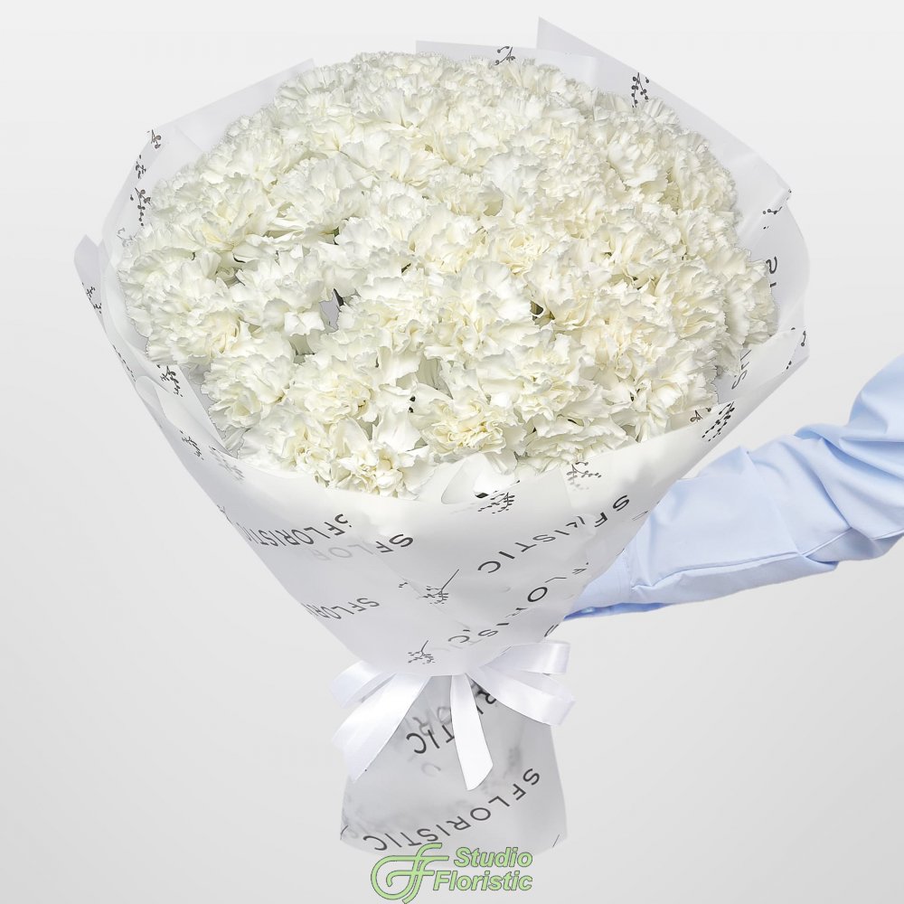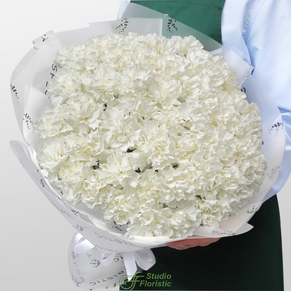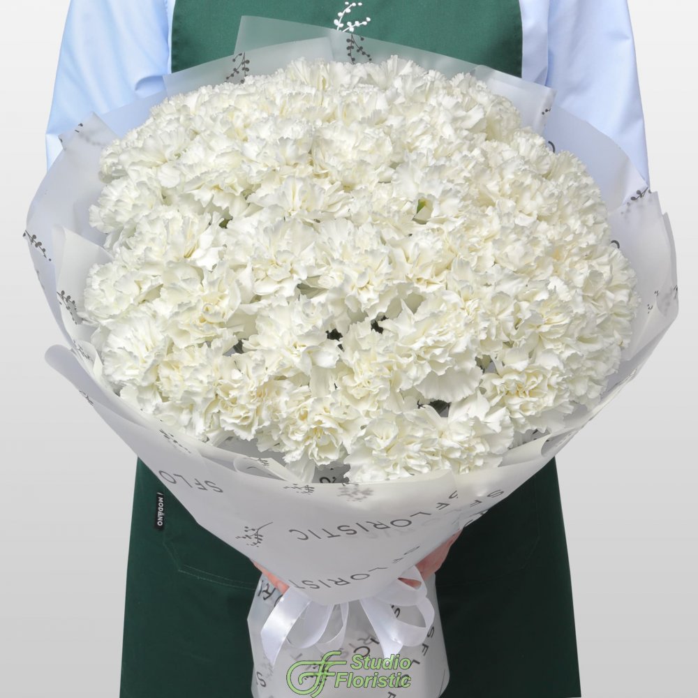 Букет из Белых Гвоздик 51 шт «Фарфоровая Мечта»