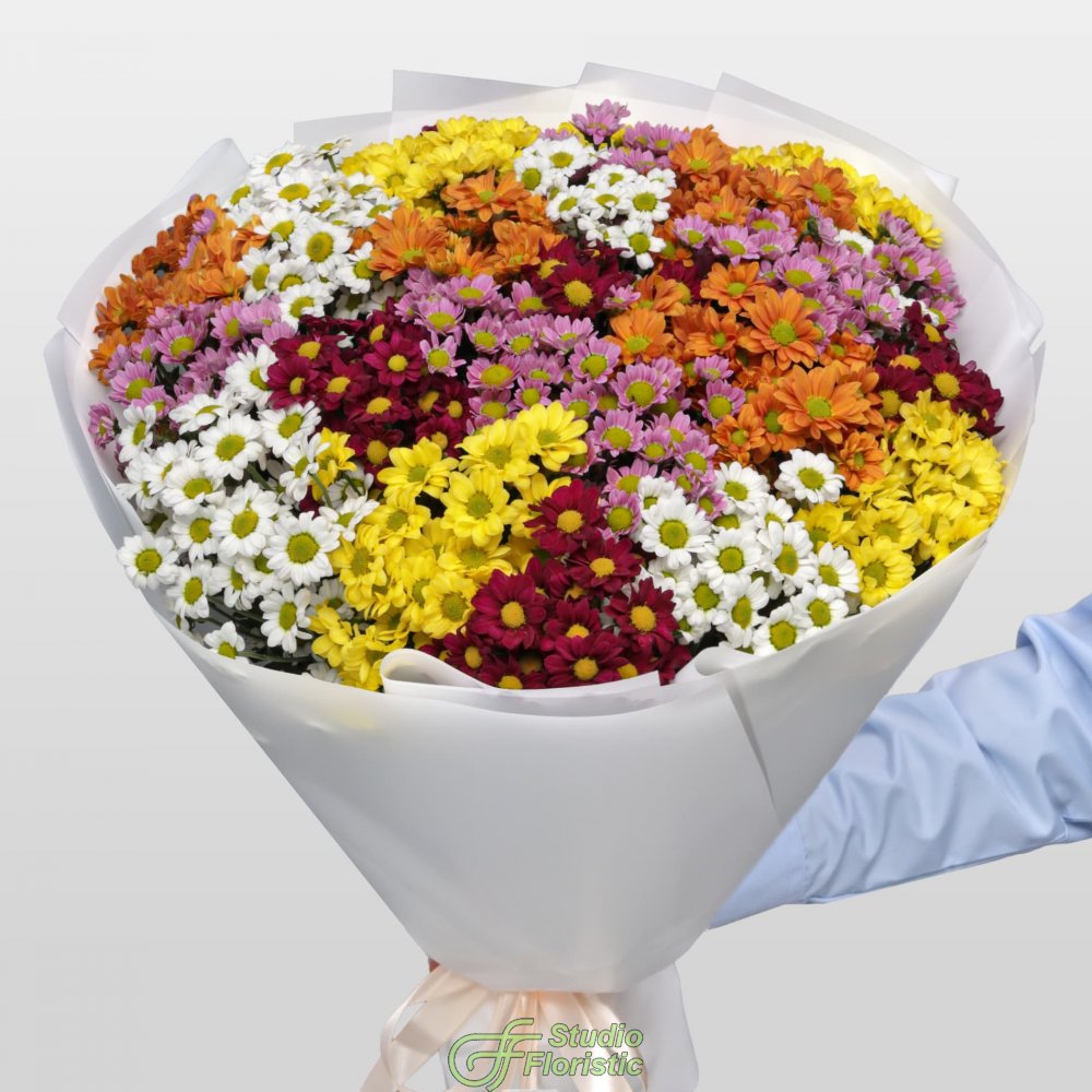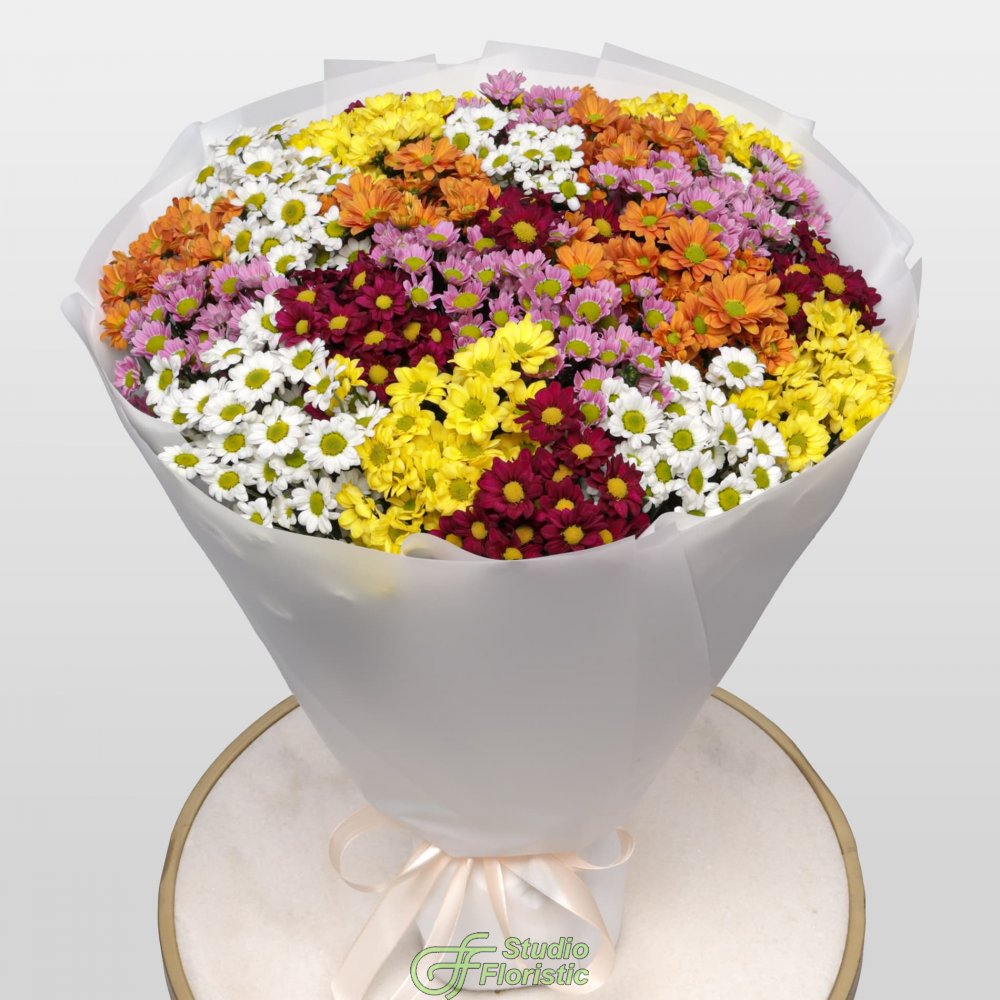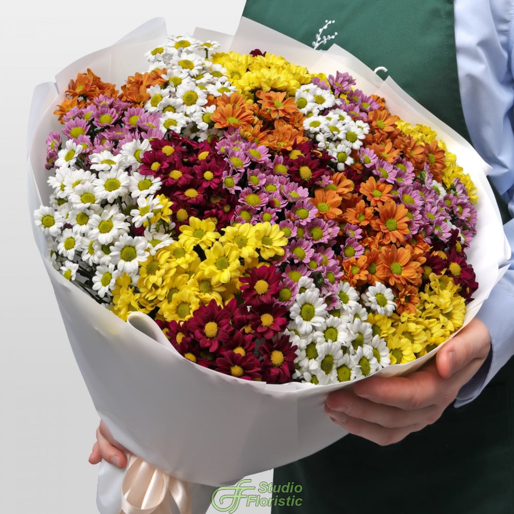 Букет из микса Хризантем Сантини 25 шт «Пестрый луг»