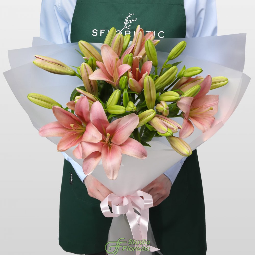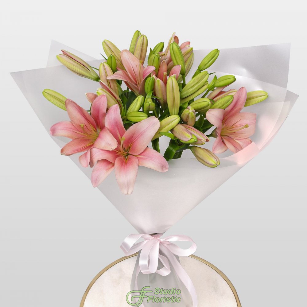 Букет из Розовой Азиатской Лилии 9 шт «Шелковый путь»