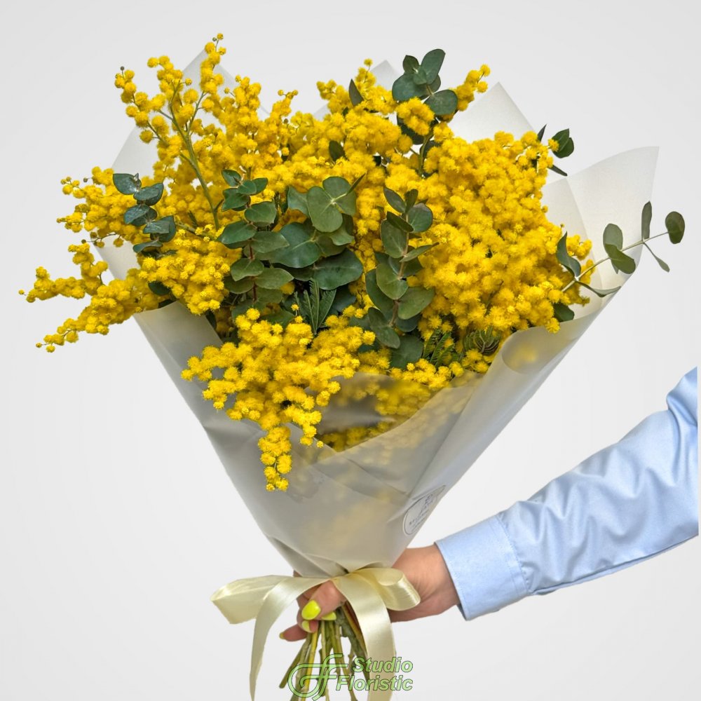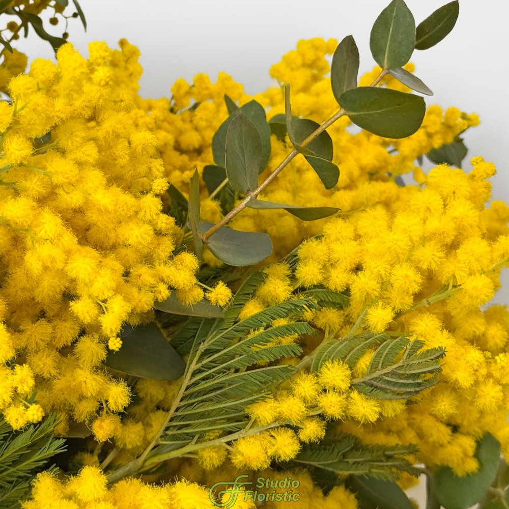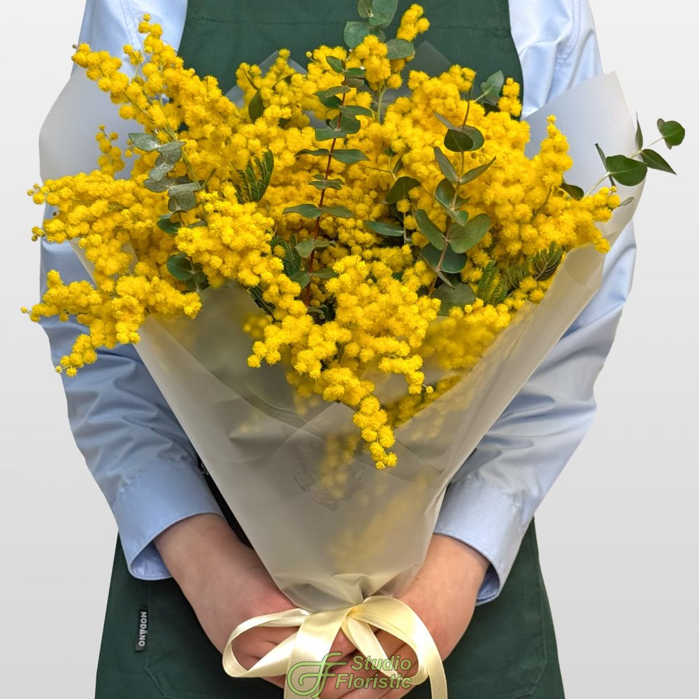 Букет из Мимоз 9 шт с эвкалиптом «Вестник тепла»