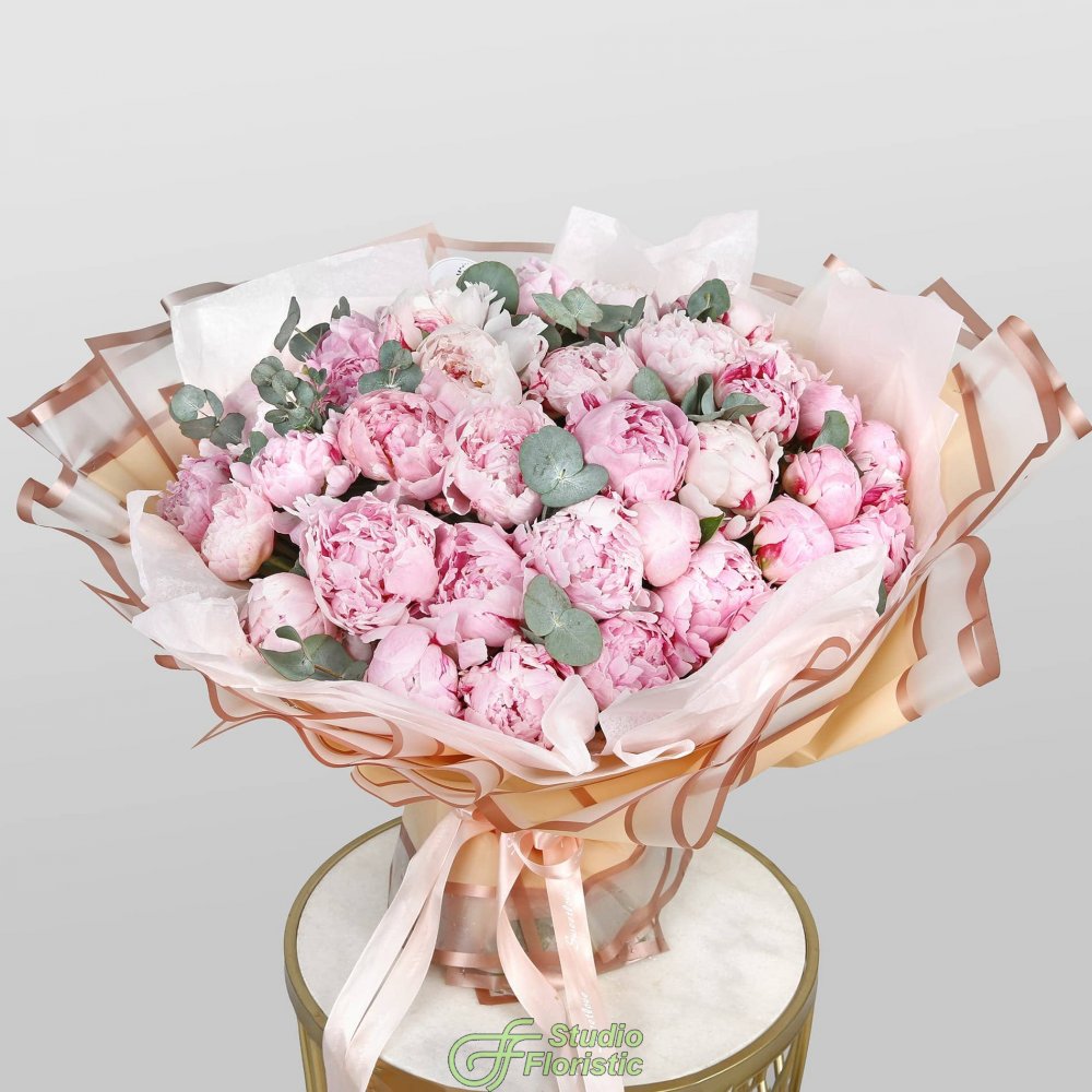 Букет из Пионов и Эвкалипта «Розовый лимонад»
