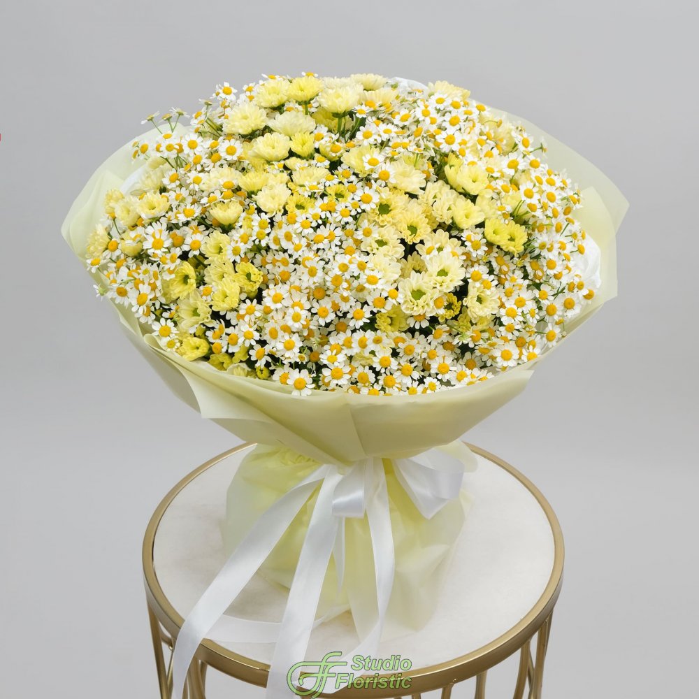Матрикария (11шт.); Хризантема Сантини (6шт.); Упаковка; Лента | 3799 | 5699 |