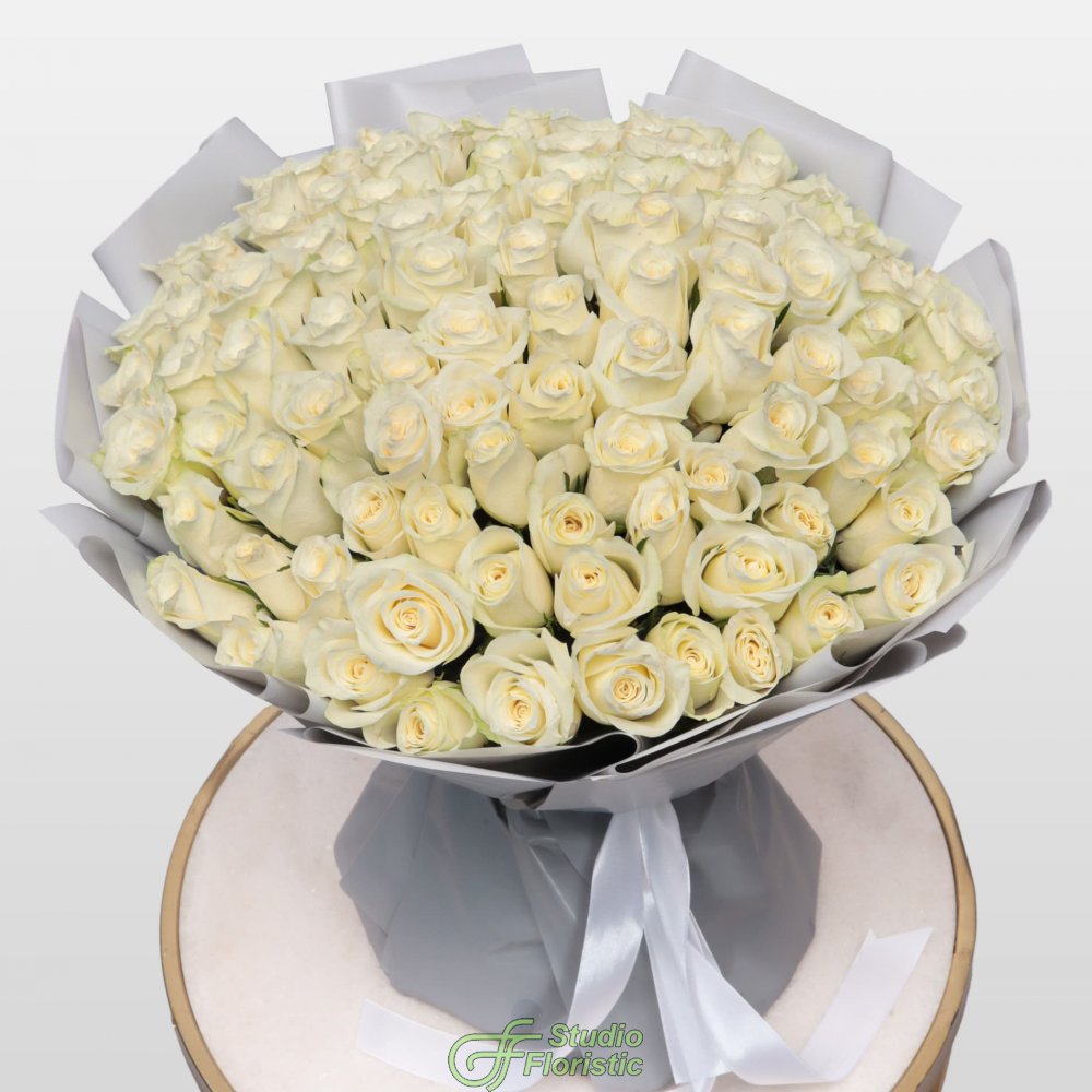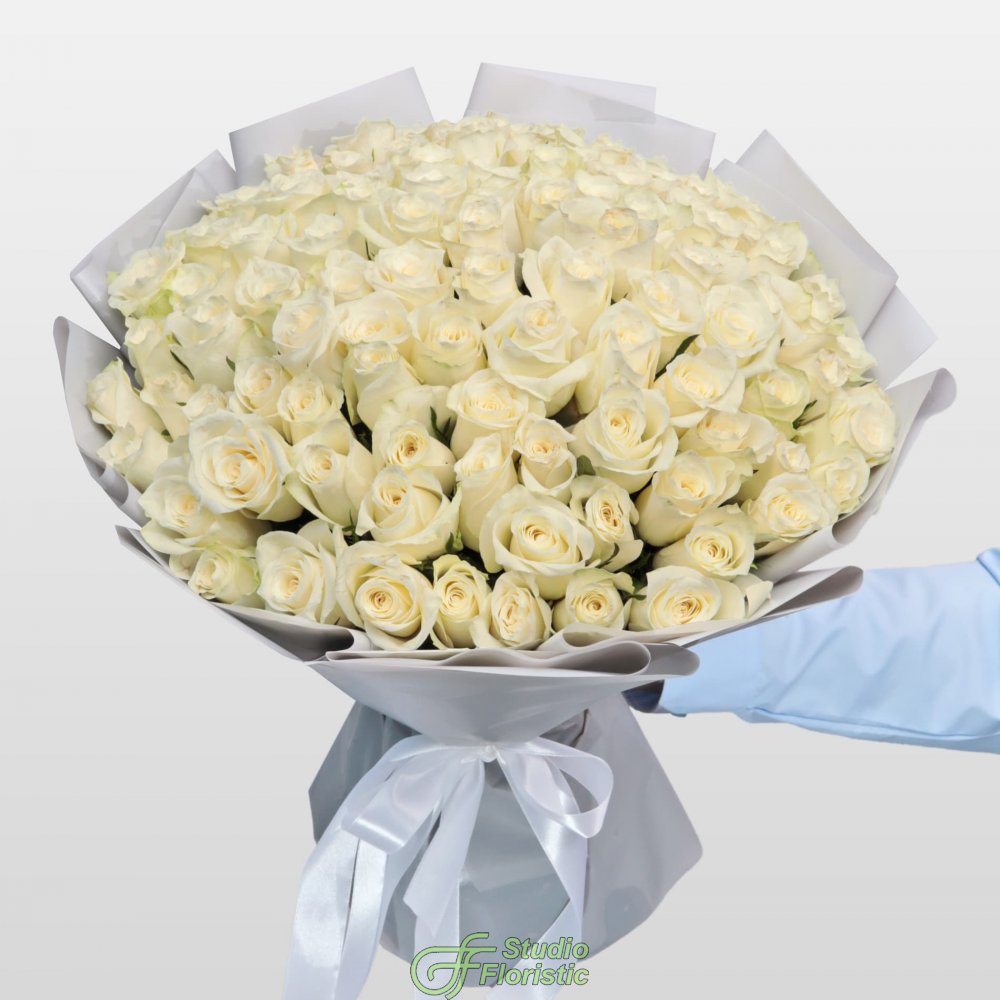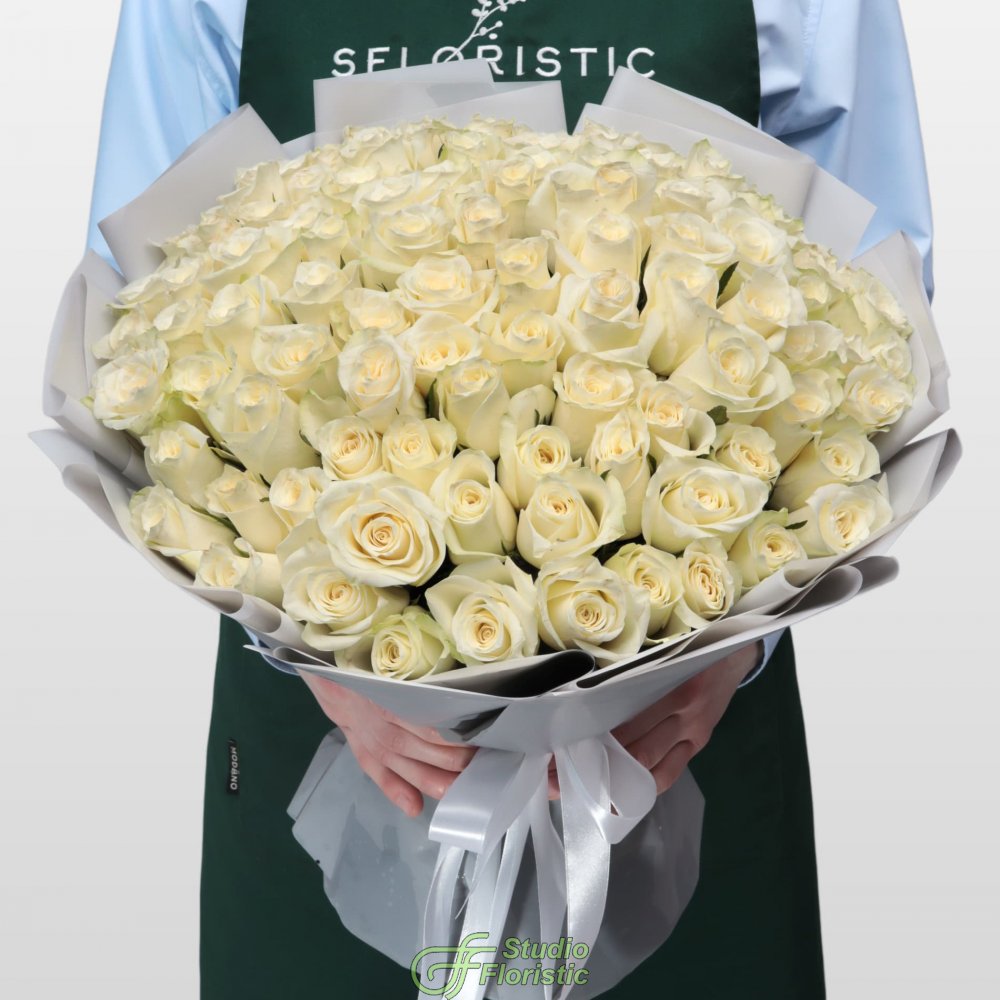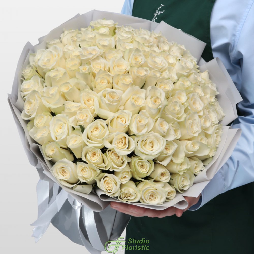 Букет из белых Роз Кения 101 шт 40 см «Свет Моей Души»