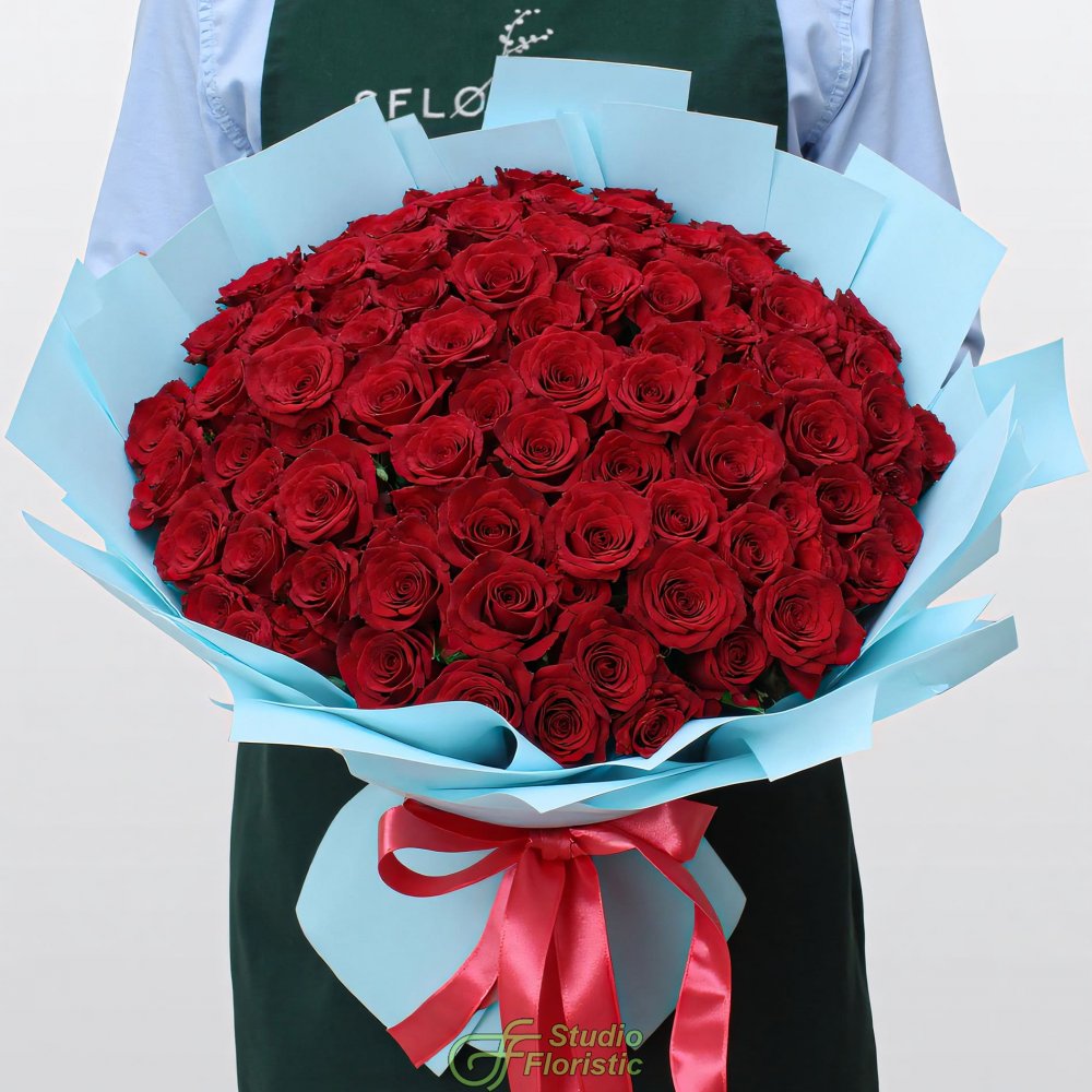 Роза Кения (101шт.); Упаковка; Атласная лента (2шт.) | 6299 | 10099 |