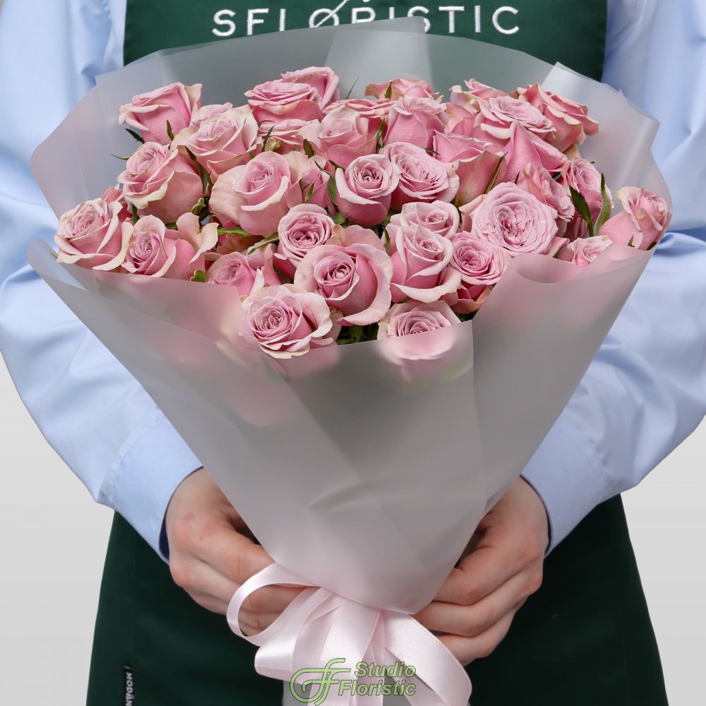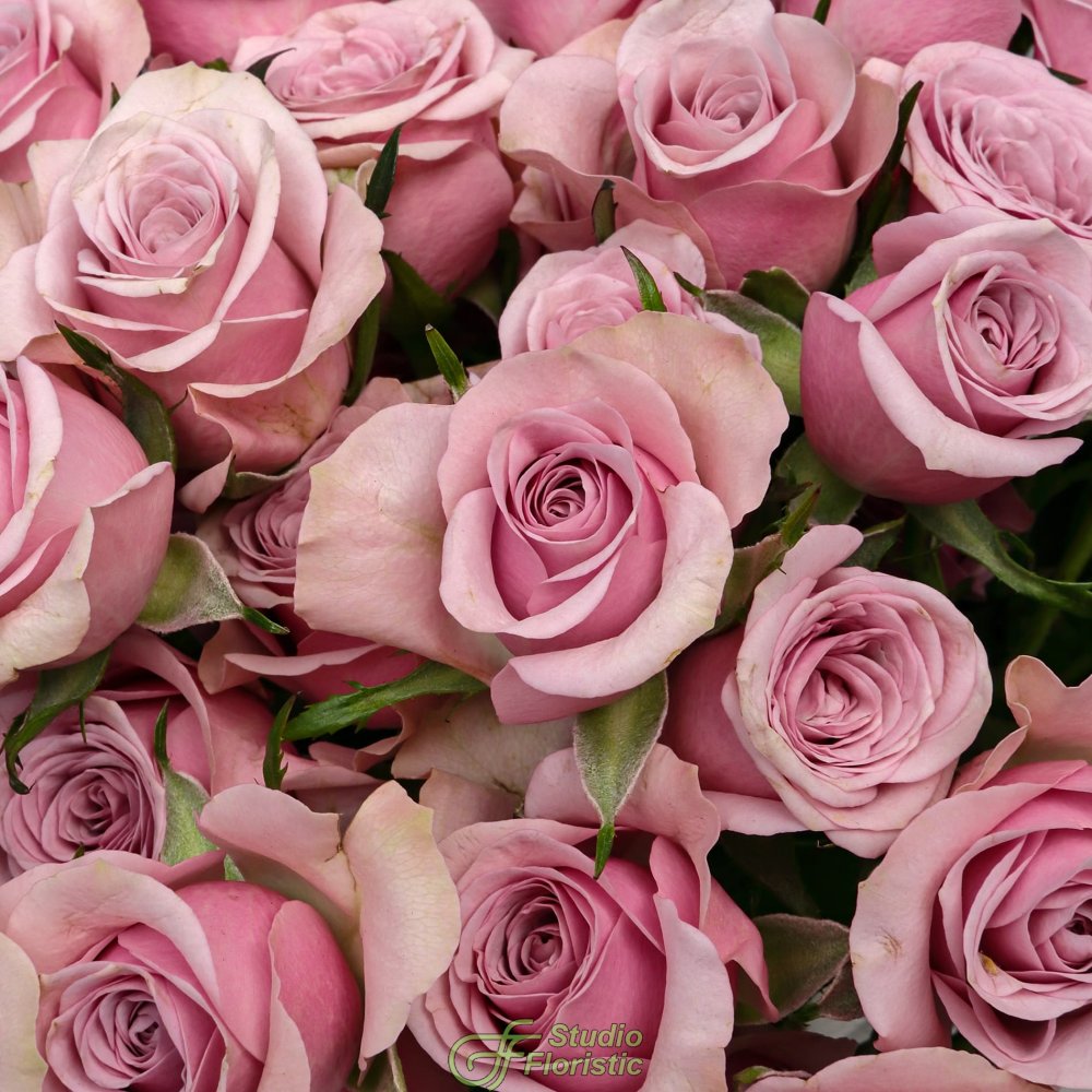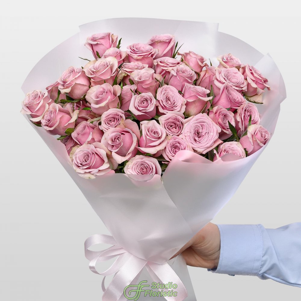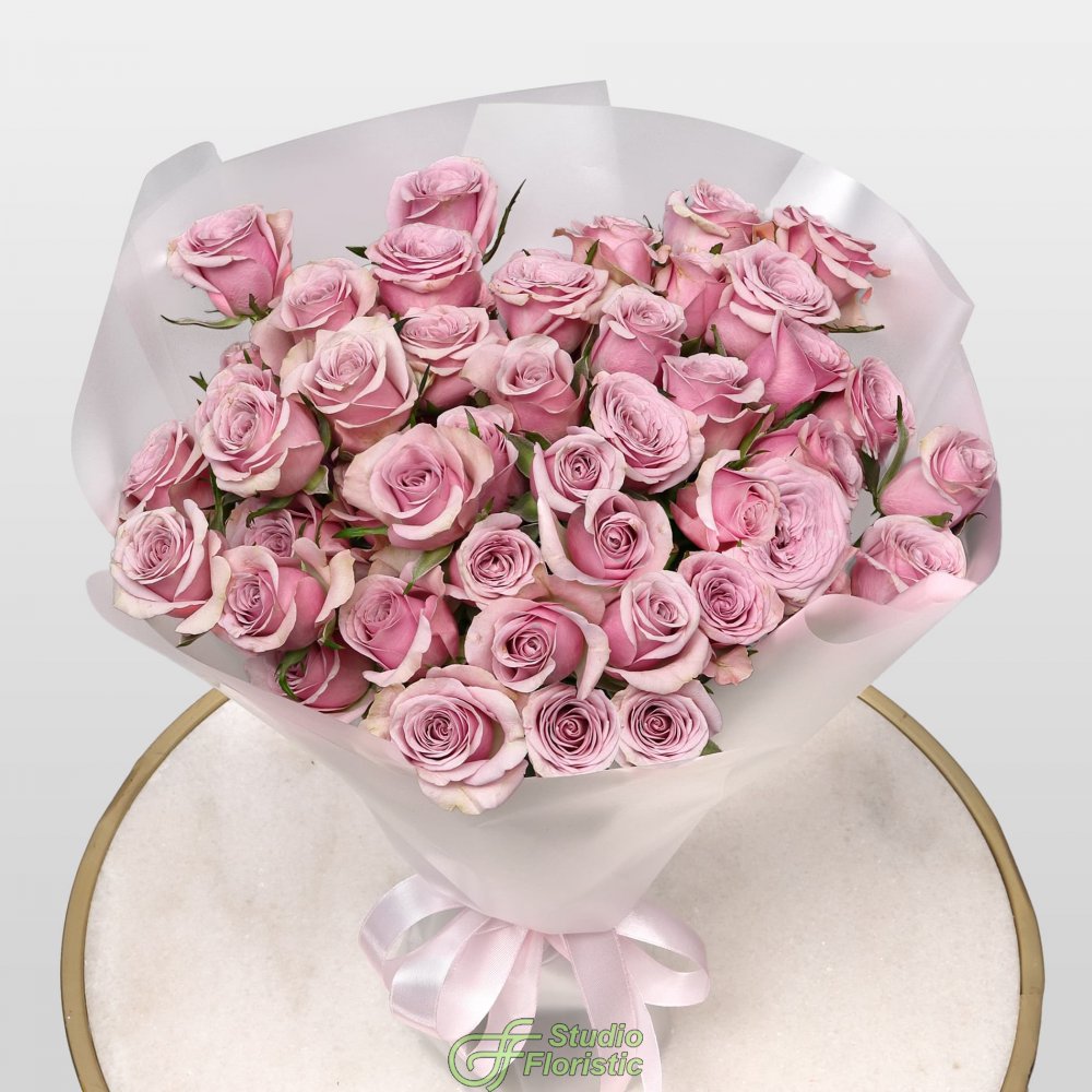 Букет из Сиреневой Кустовой Розы 40 см 15 шт «Парижское утро»