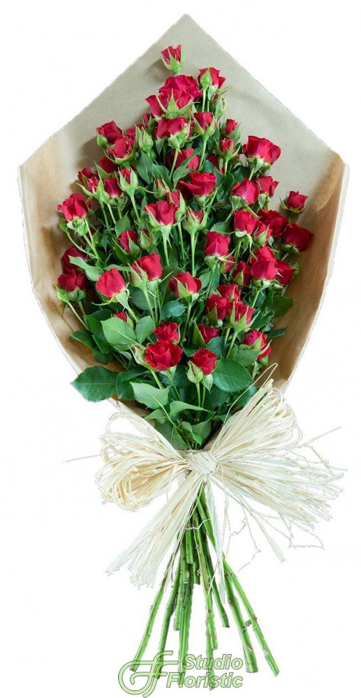 Букет из красных кустовых Роз «Гранатовый вихрь»
