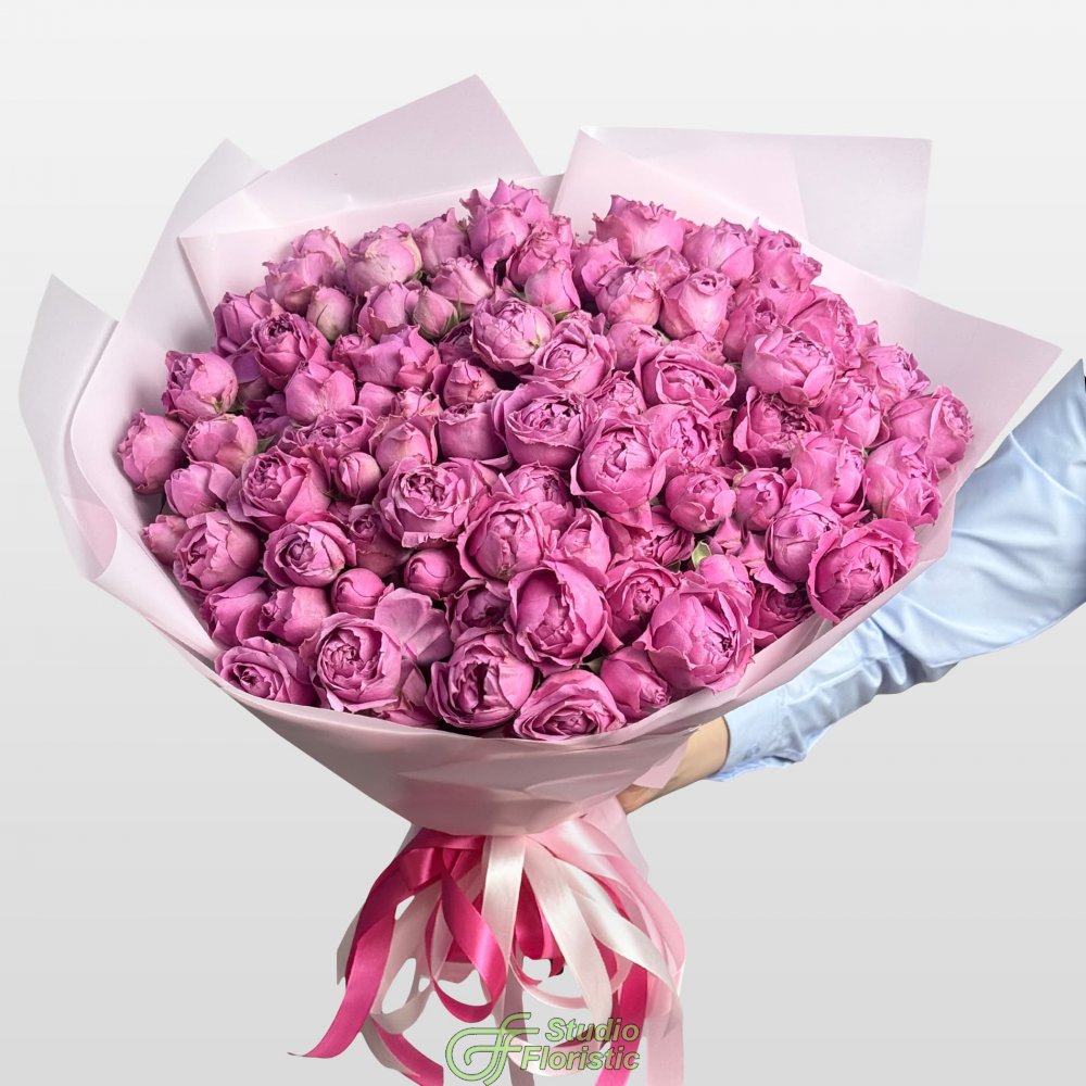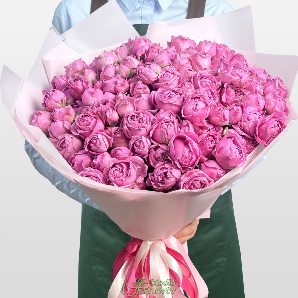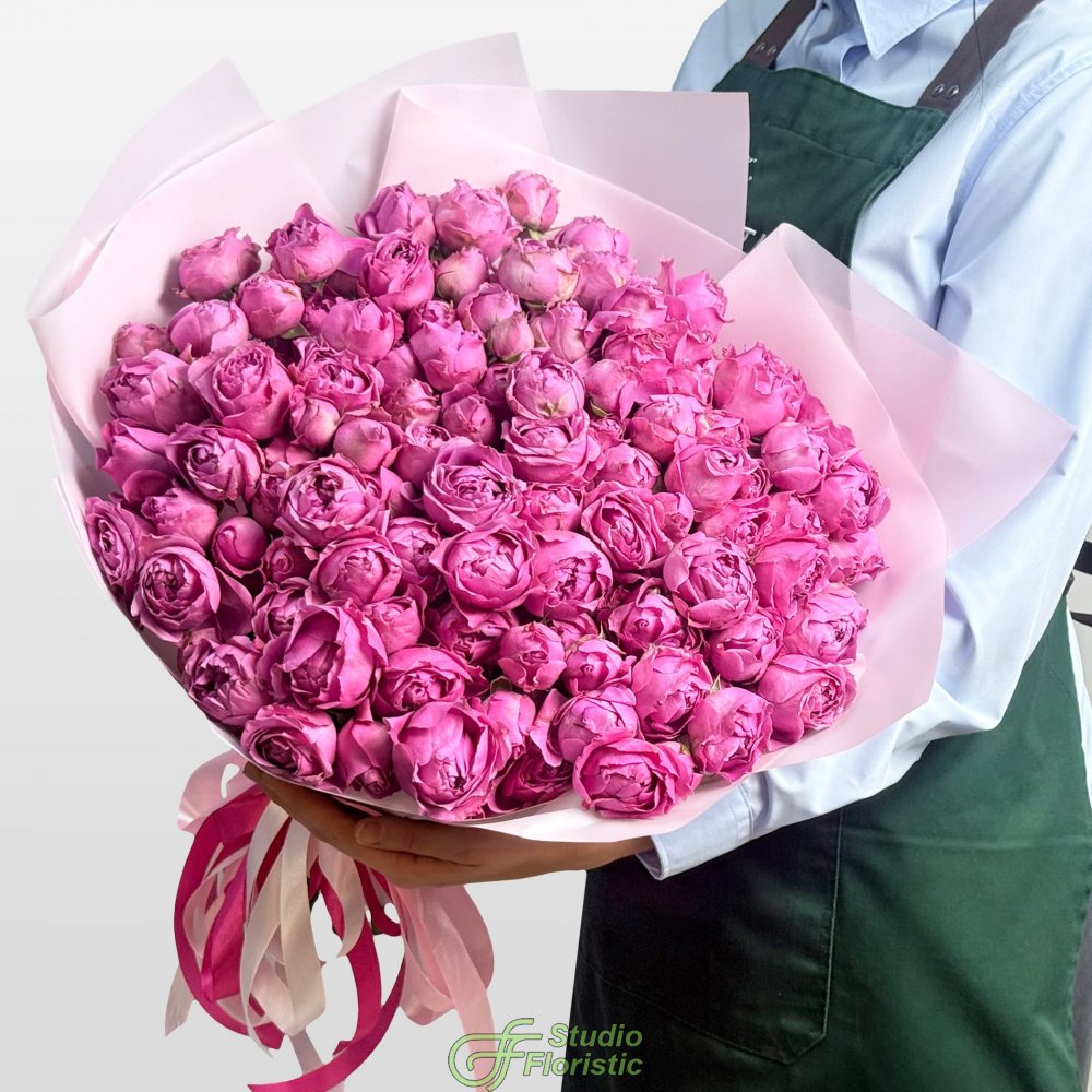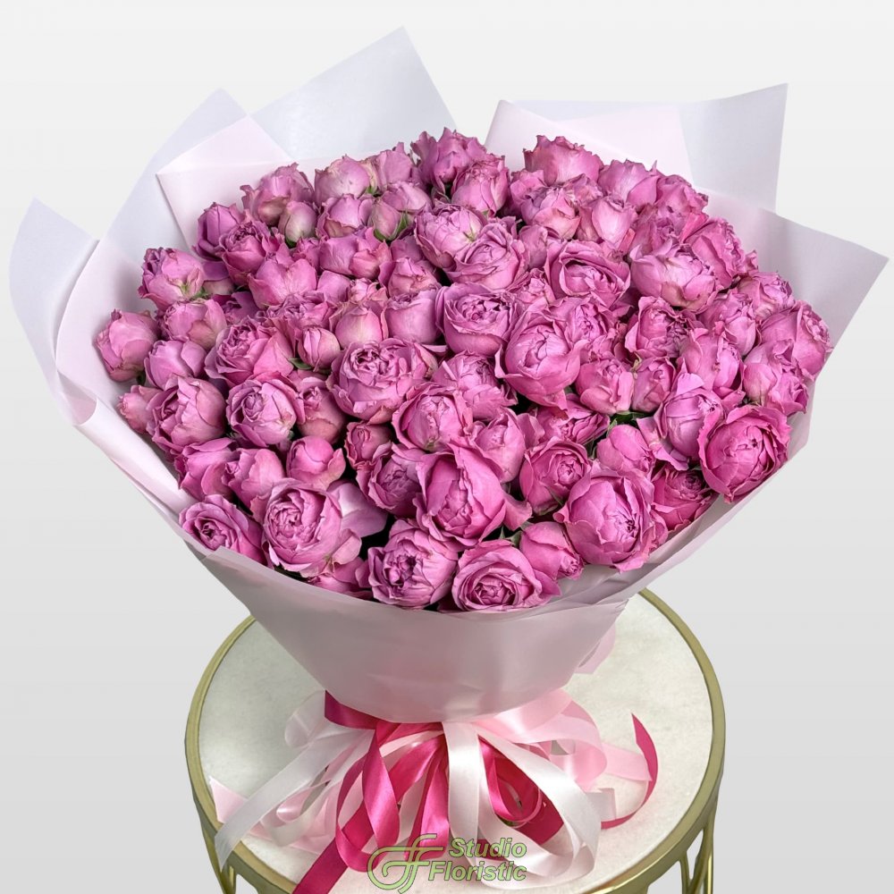 Букет из Кустовых Пионовидных Роз Мисти Баблс 51 шт «Пышное великолепие»