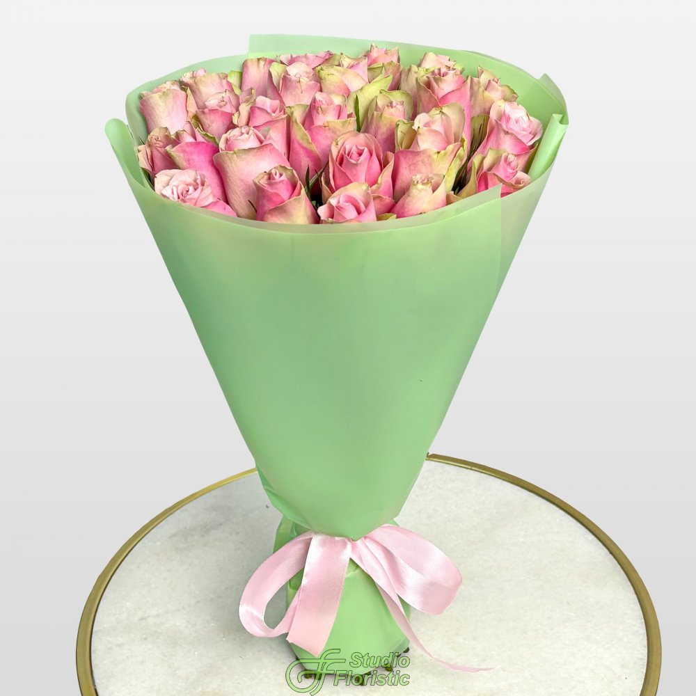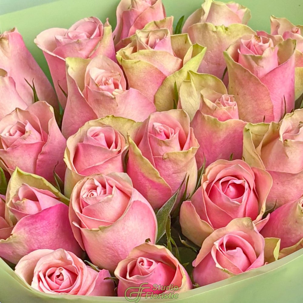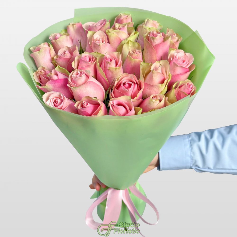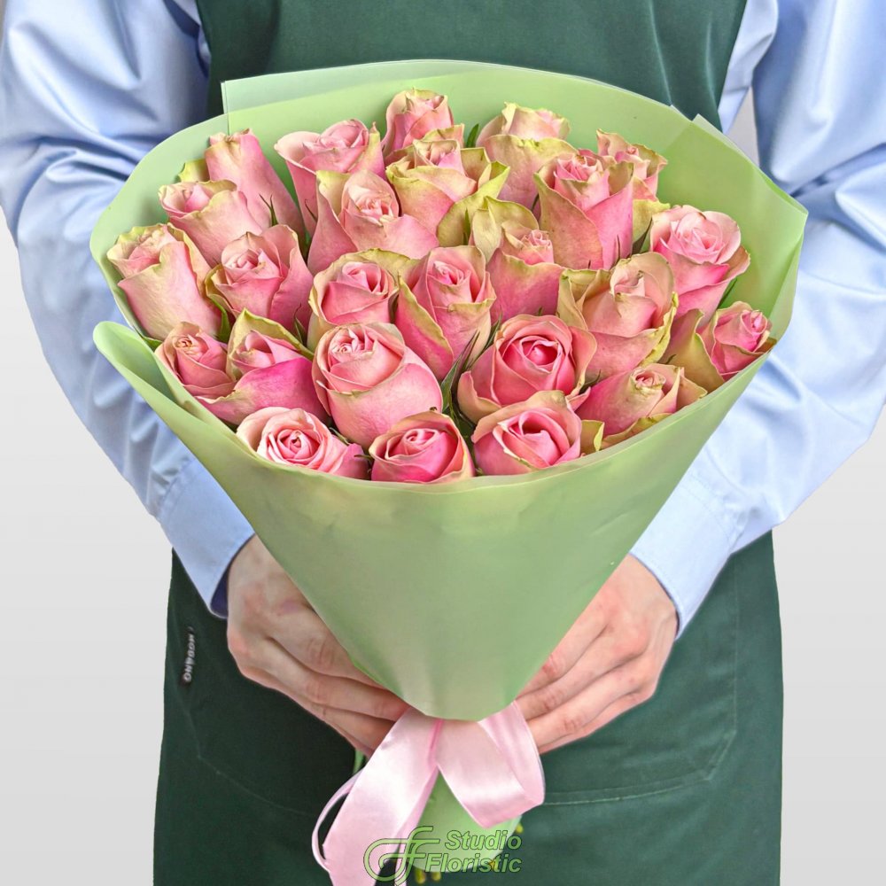 Букет из розовых Роз Кения 40 см 25 шт «Мелодия Сердца»