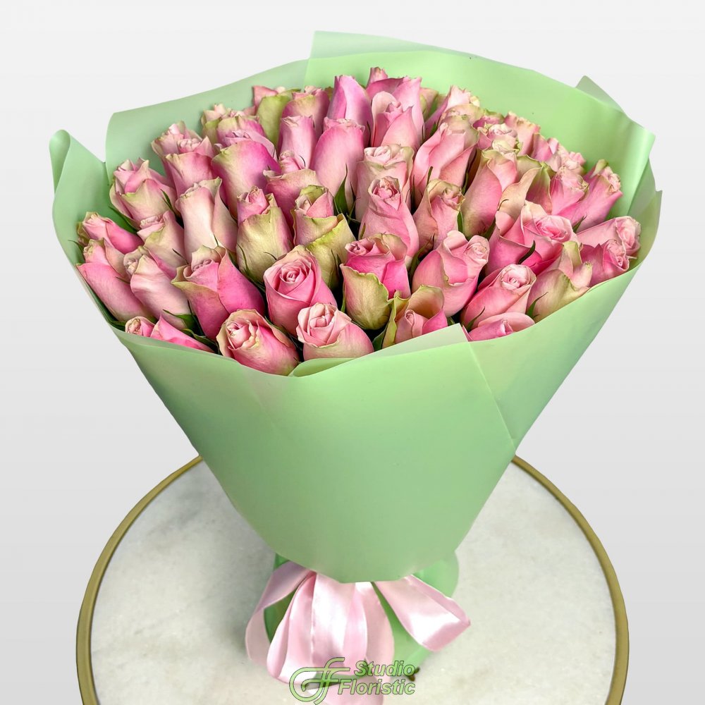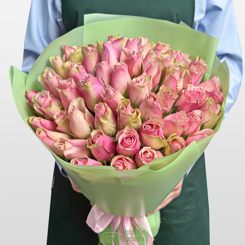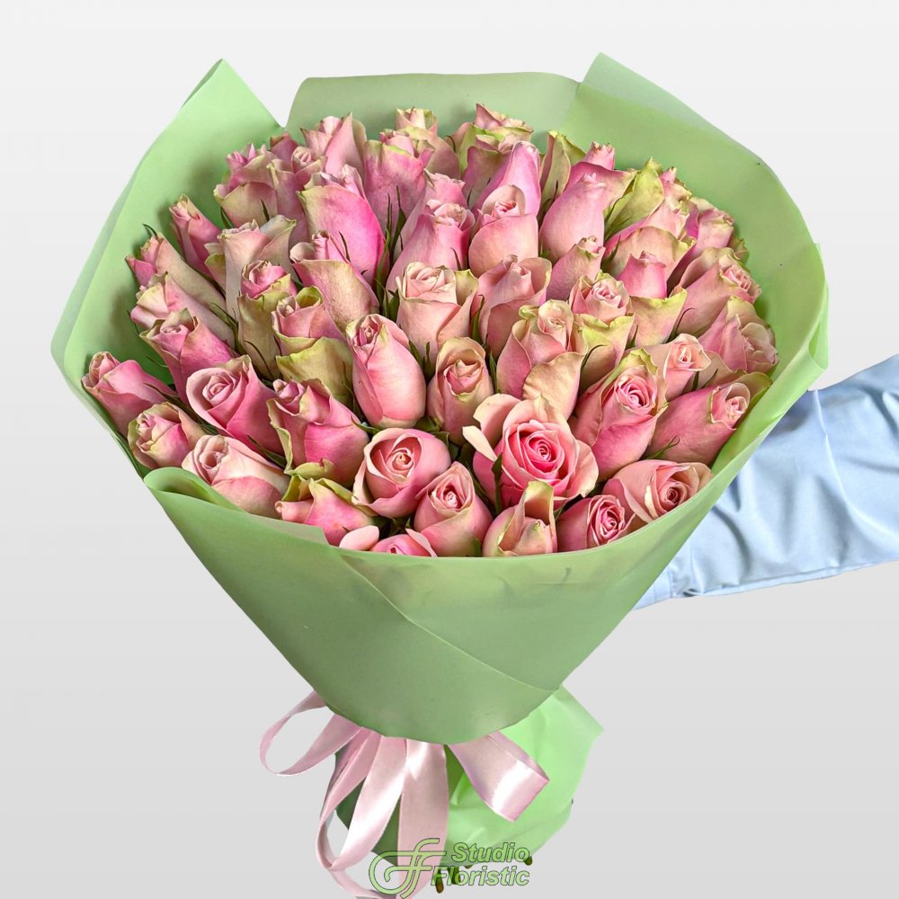 Букет из розовых Роз Кения 40 см 51 шт «Признание без Слов»