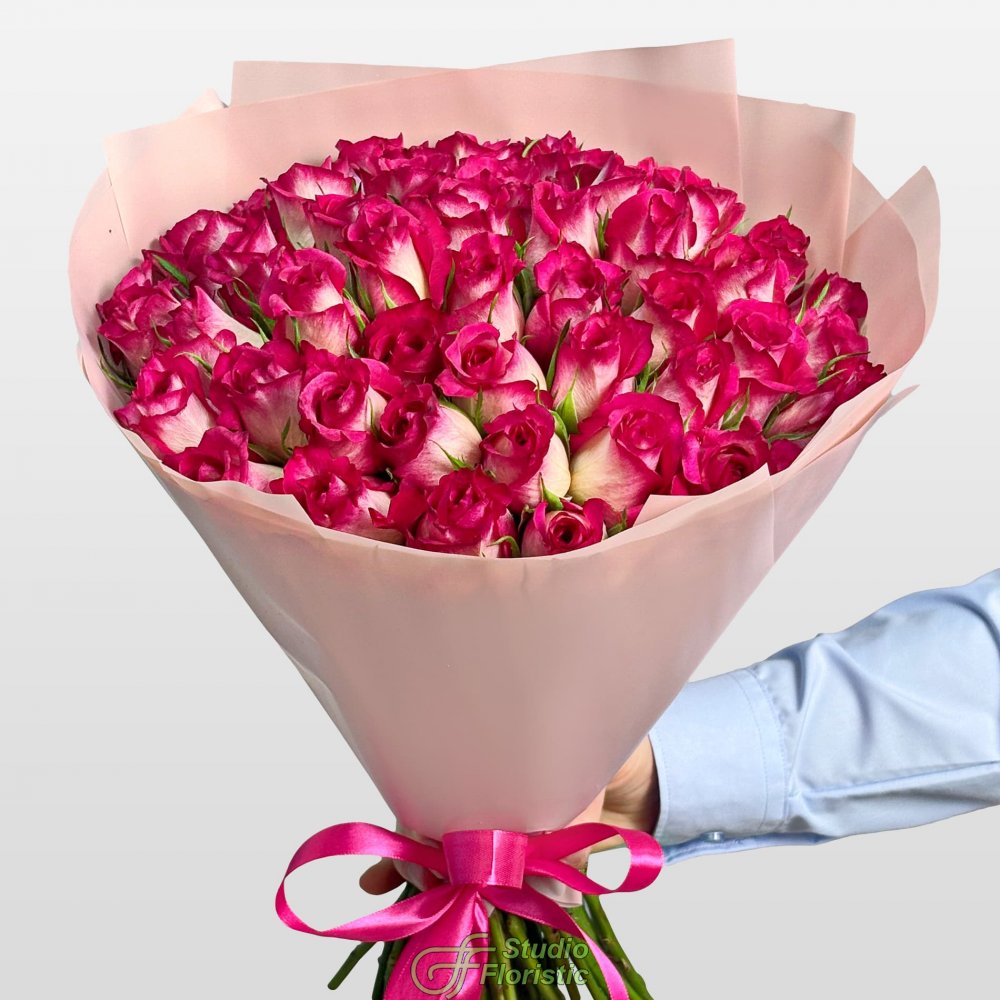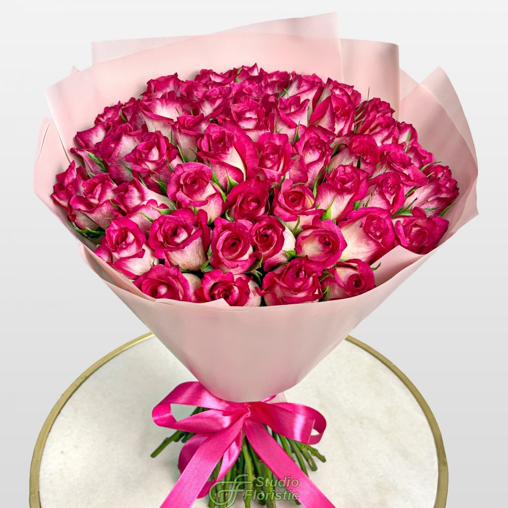Букет из розовых Роз Кения 40 см 51 шт «Вихрь Эмоций»