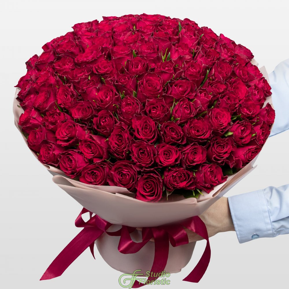Роза Кения (101шт.); Упаковка; Атласная лента | 4999 | 7749 |