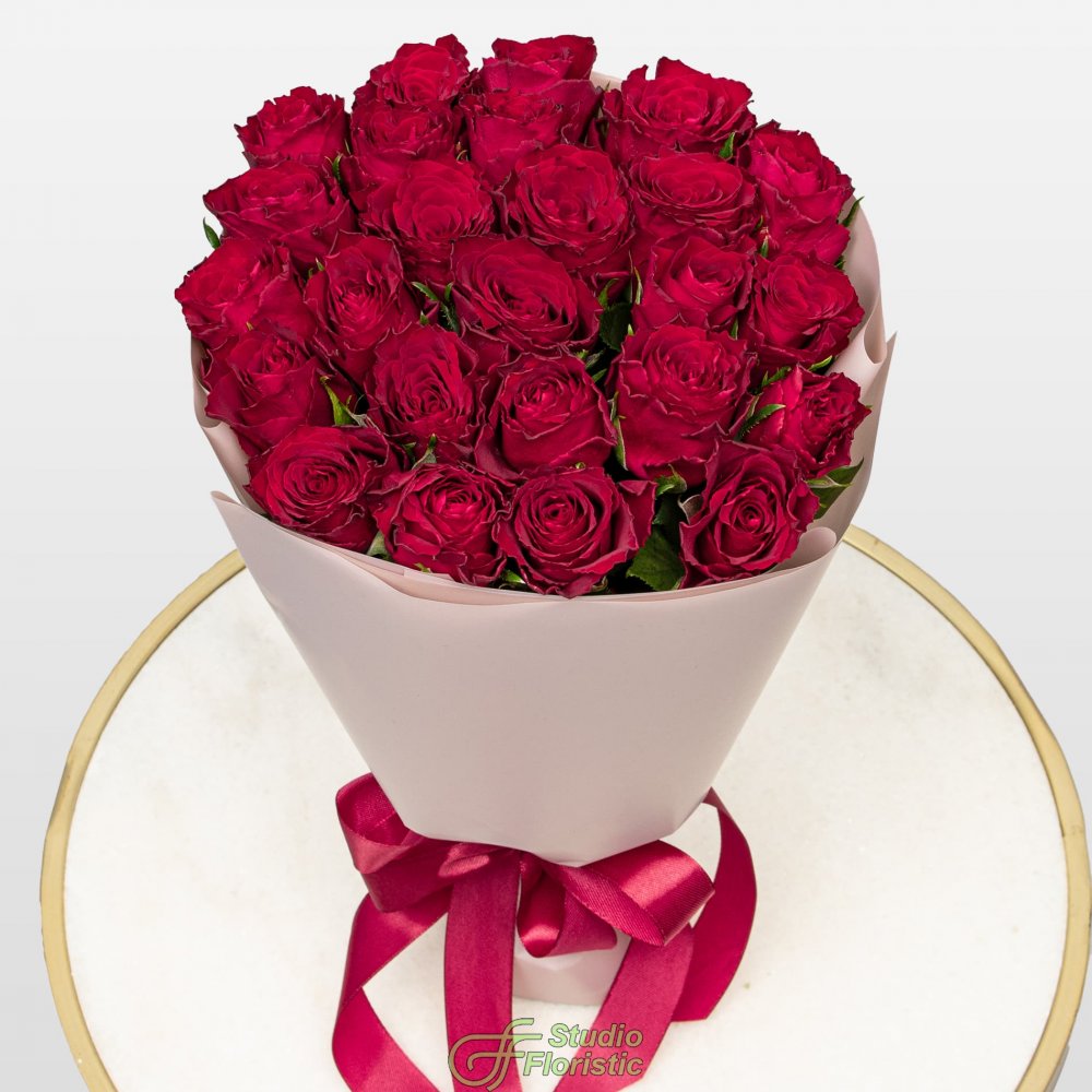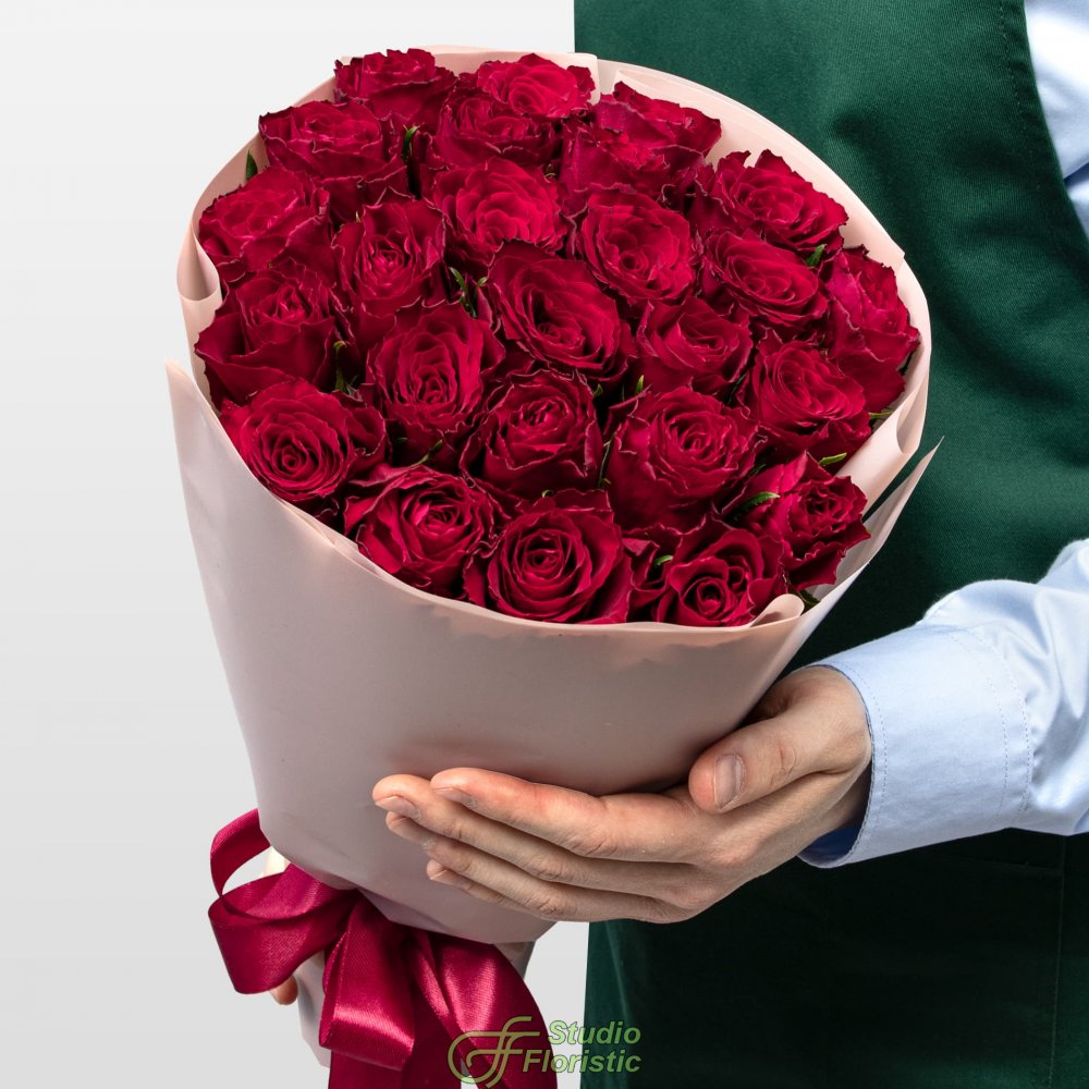 Букет красных Роз Кения 40 см 25 шт «Винный Шлейф»