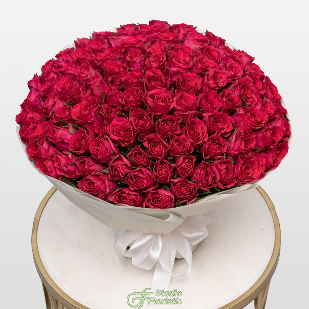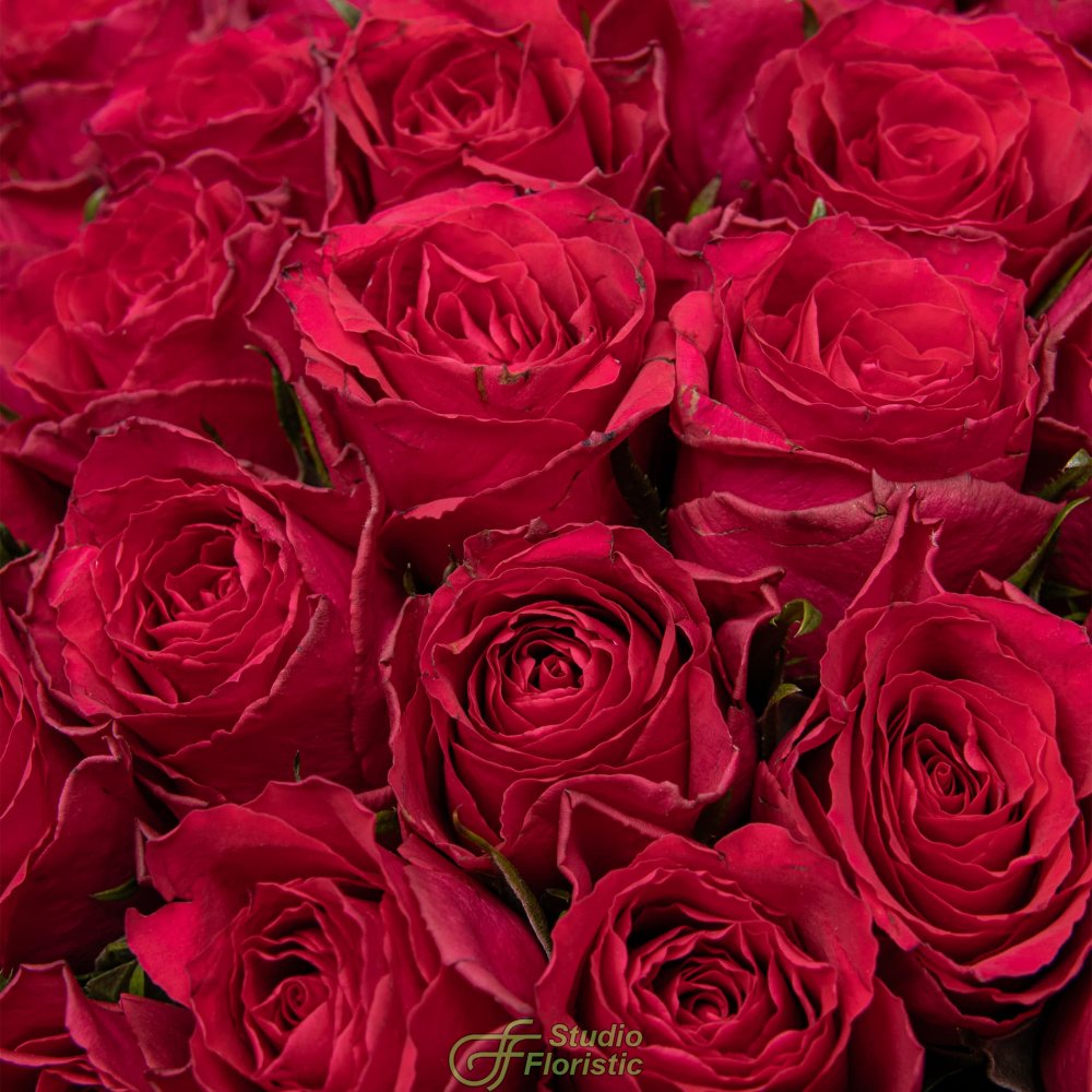 Букет малиновых Роз Кения 40 см 101 шт «Коронация»
