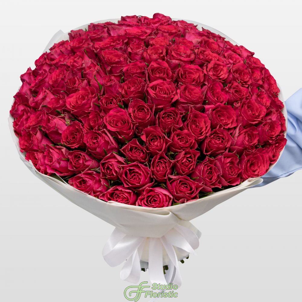 Роза Кения (101шт.); Упаковка; Атласная лента | 4999 | 7749 |