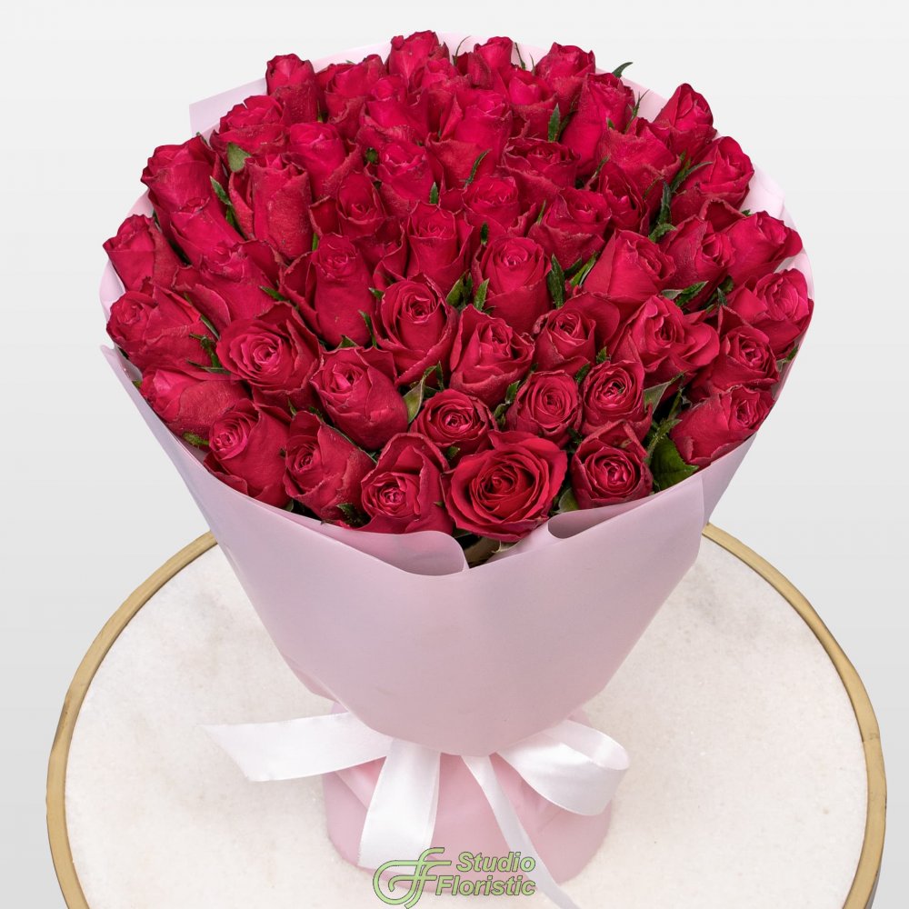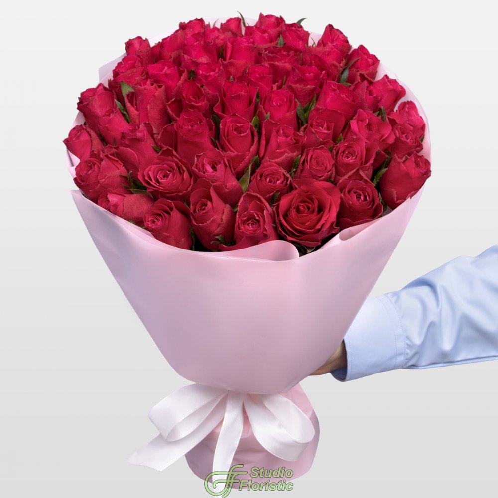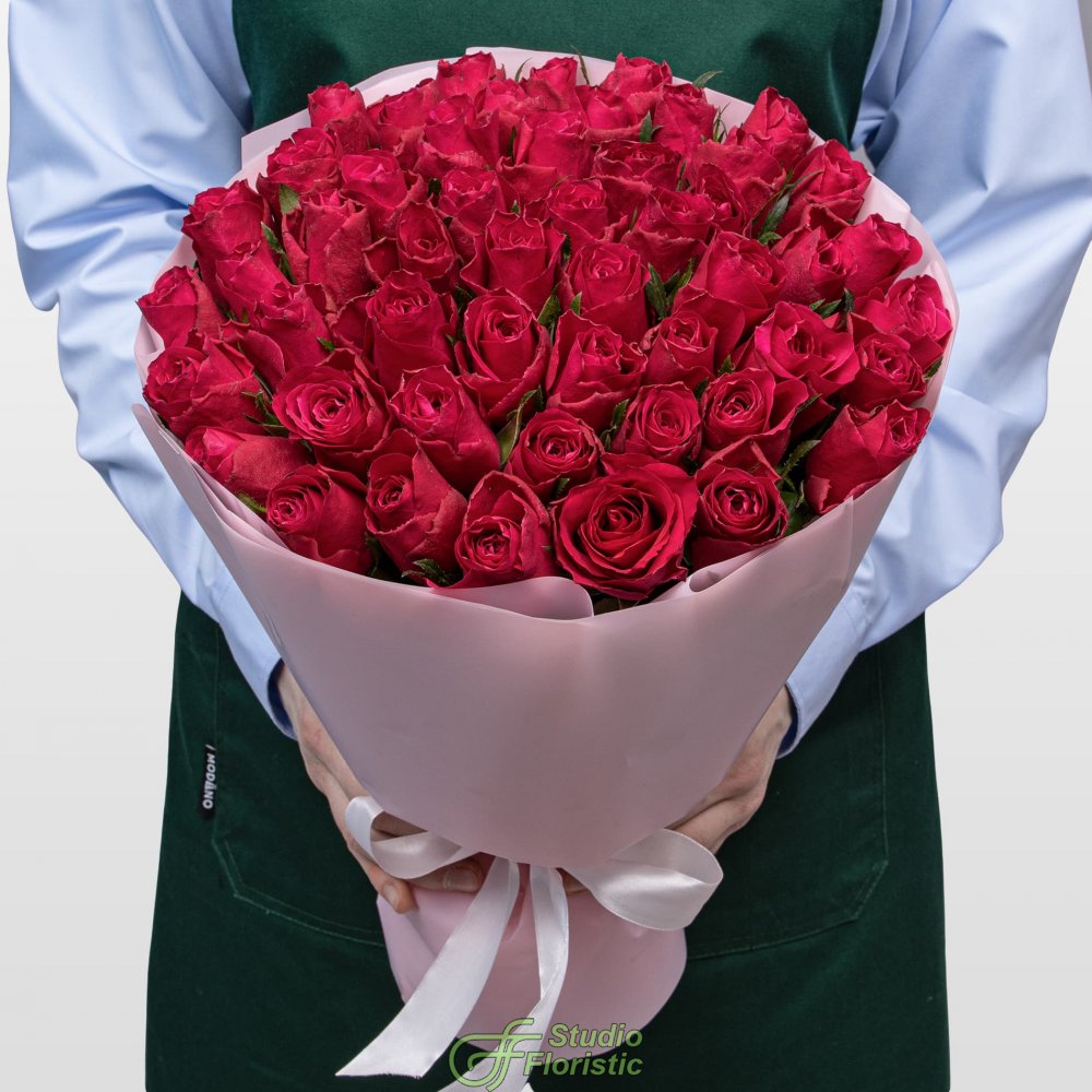 Букет малиновых Роз Кения 40 см 51 шт «Королева Драмы»