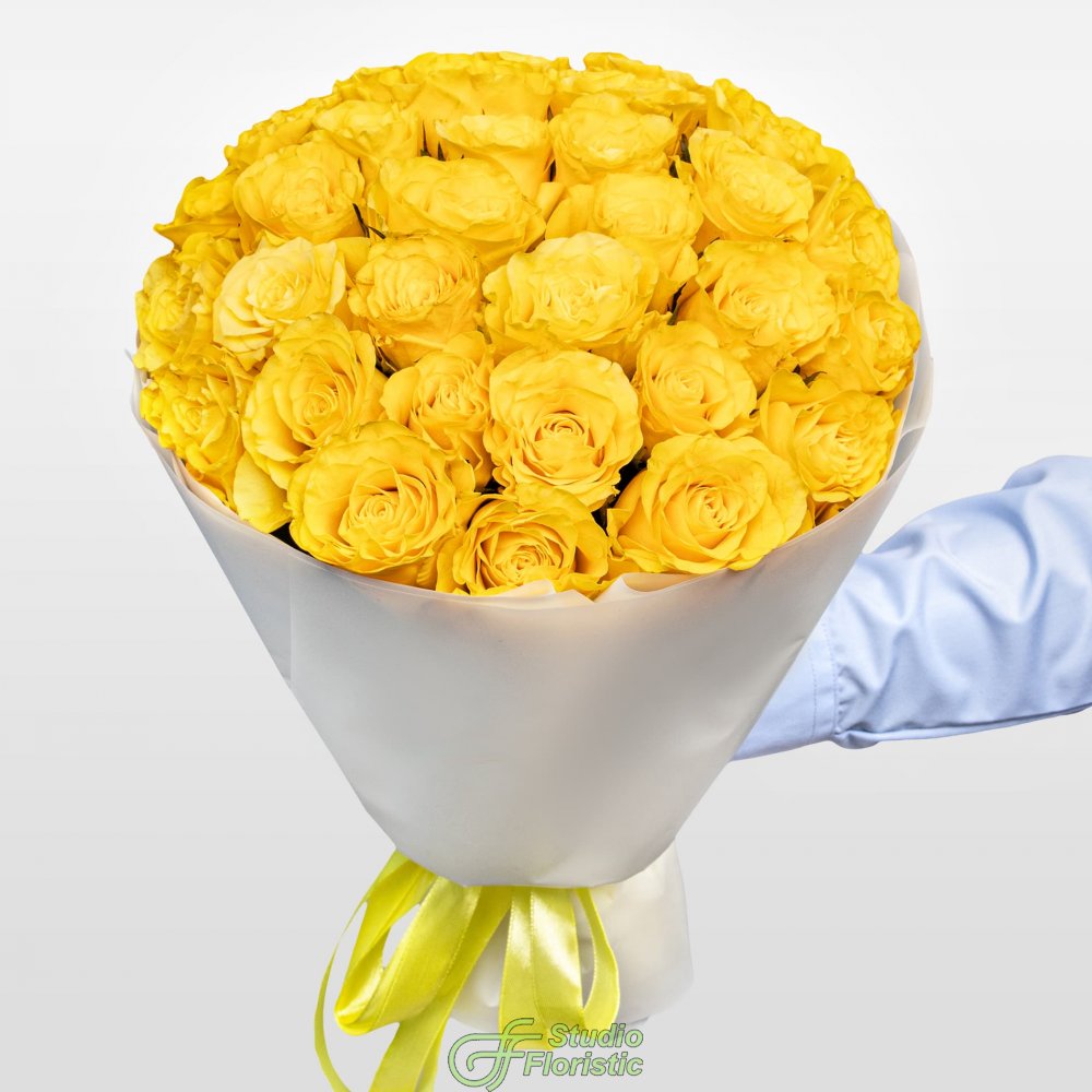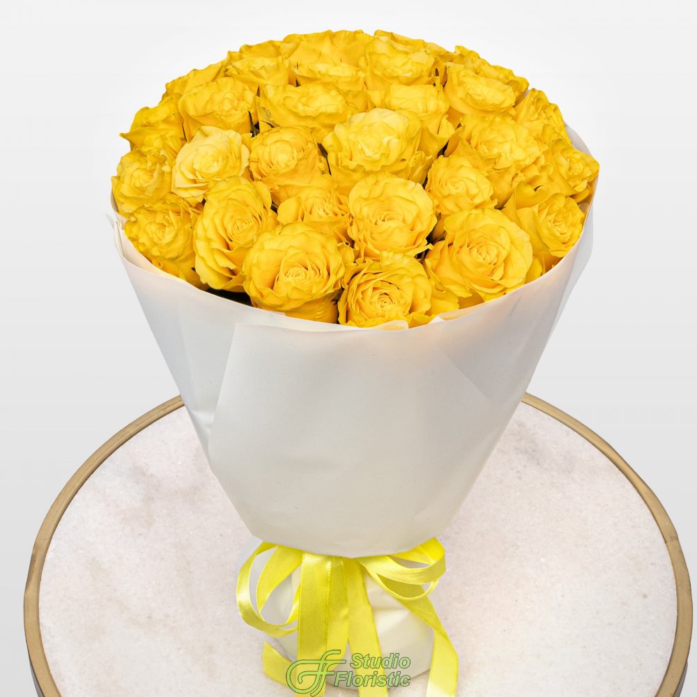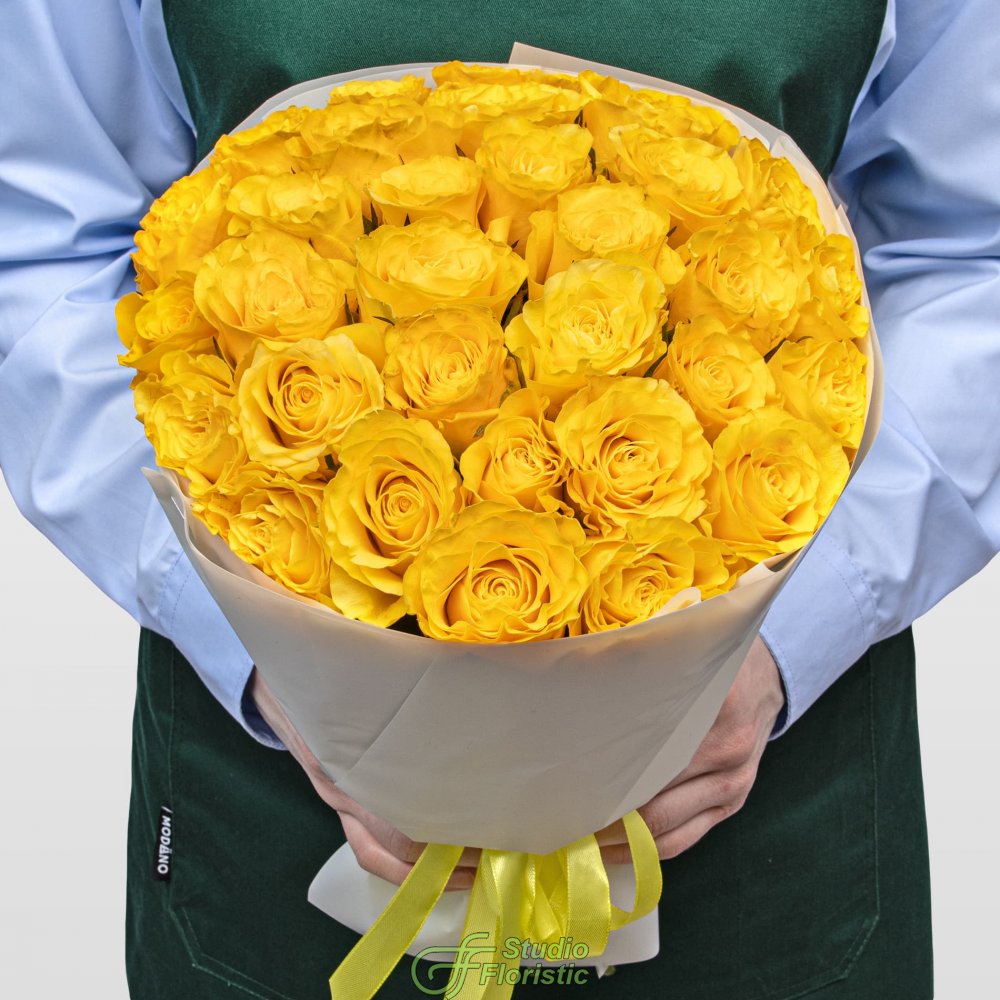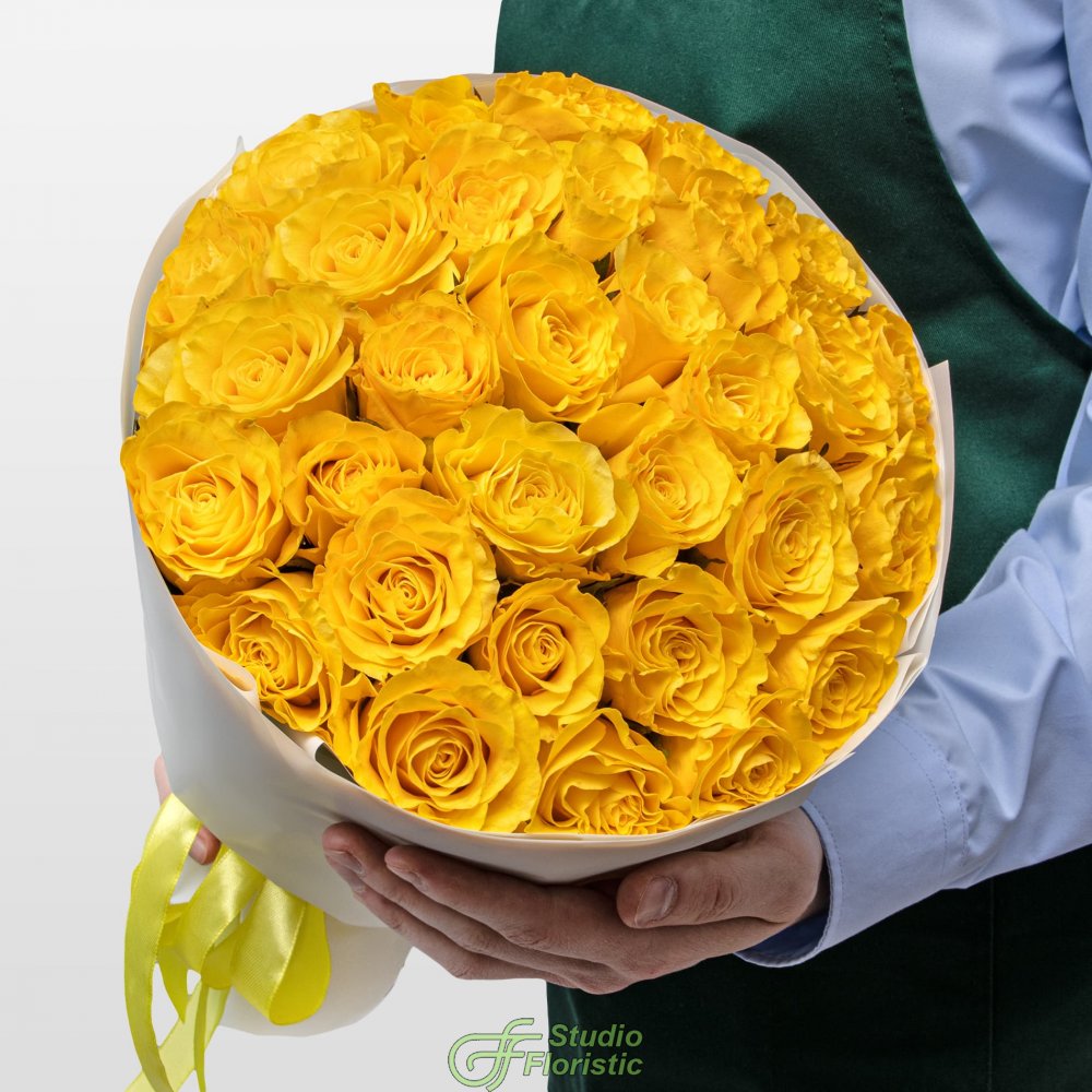 Букет желтых Роз Кения 40 см 31 шт «Солнечный Поцелуй»