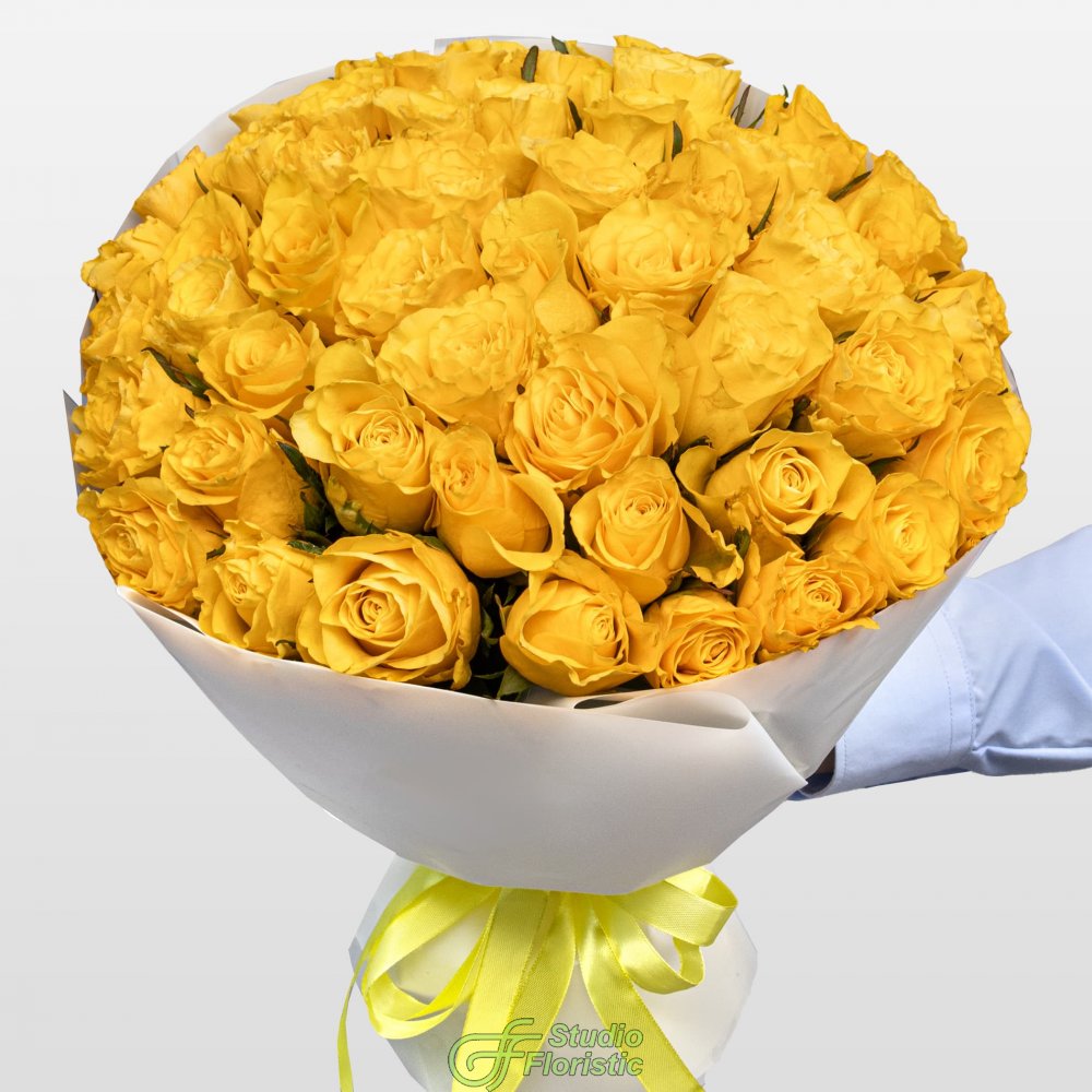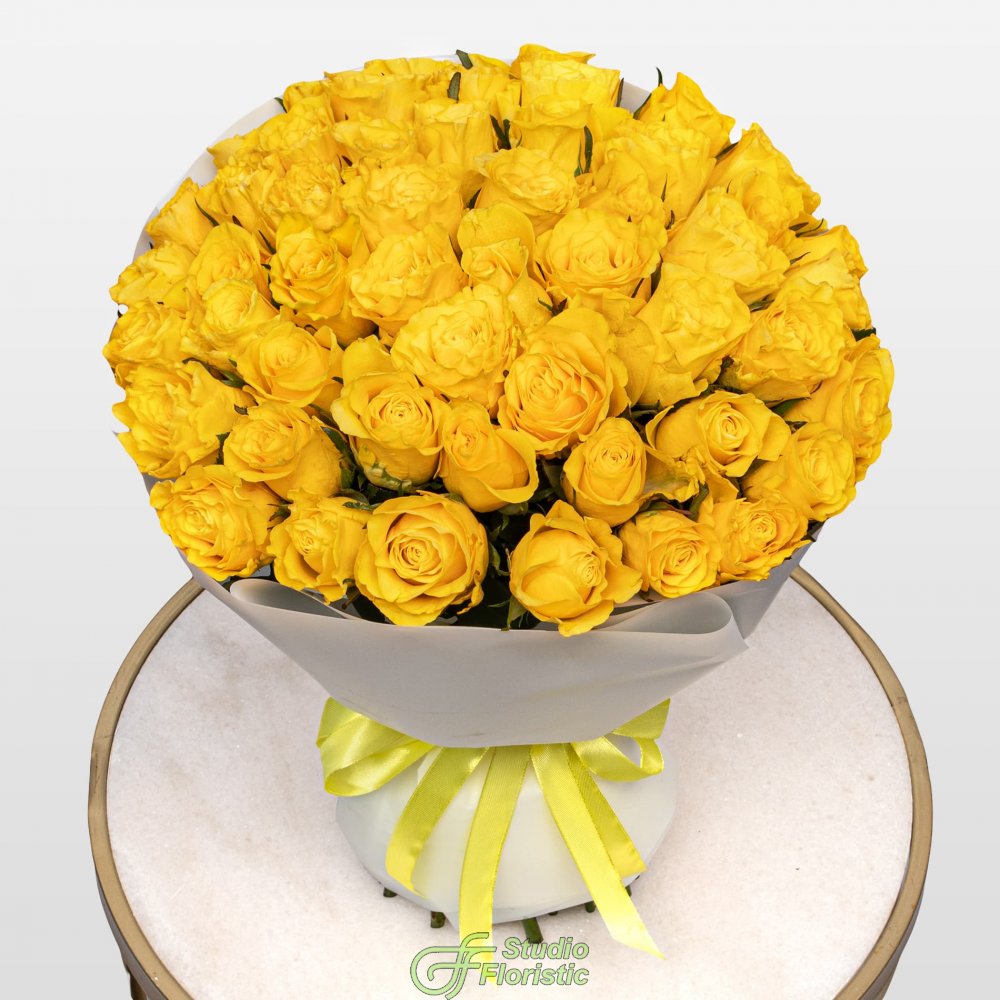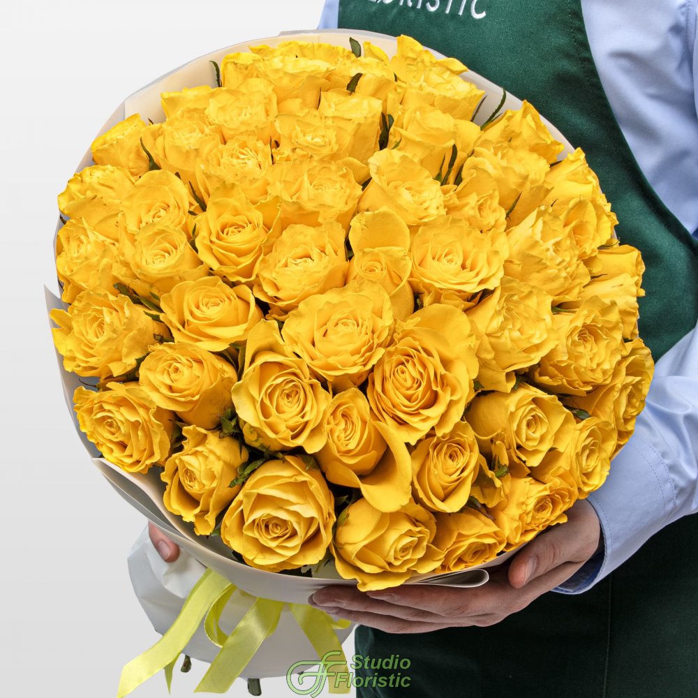 Букет желтых Роз Кения 40 см 51 шт «Лимонный Бархат»