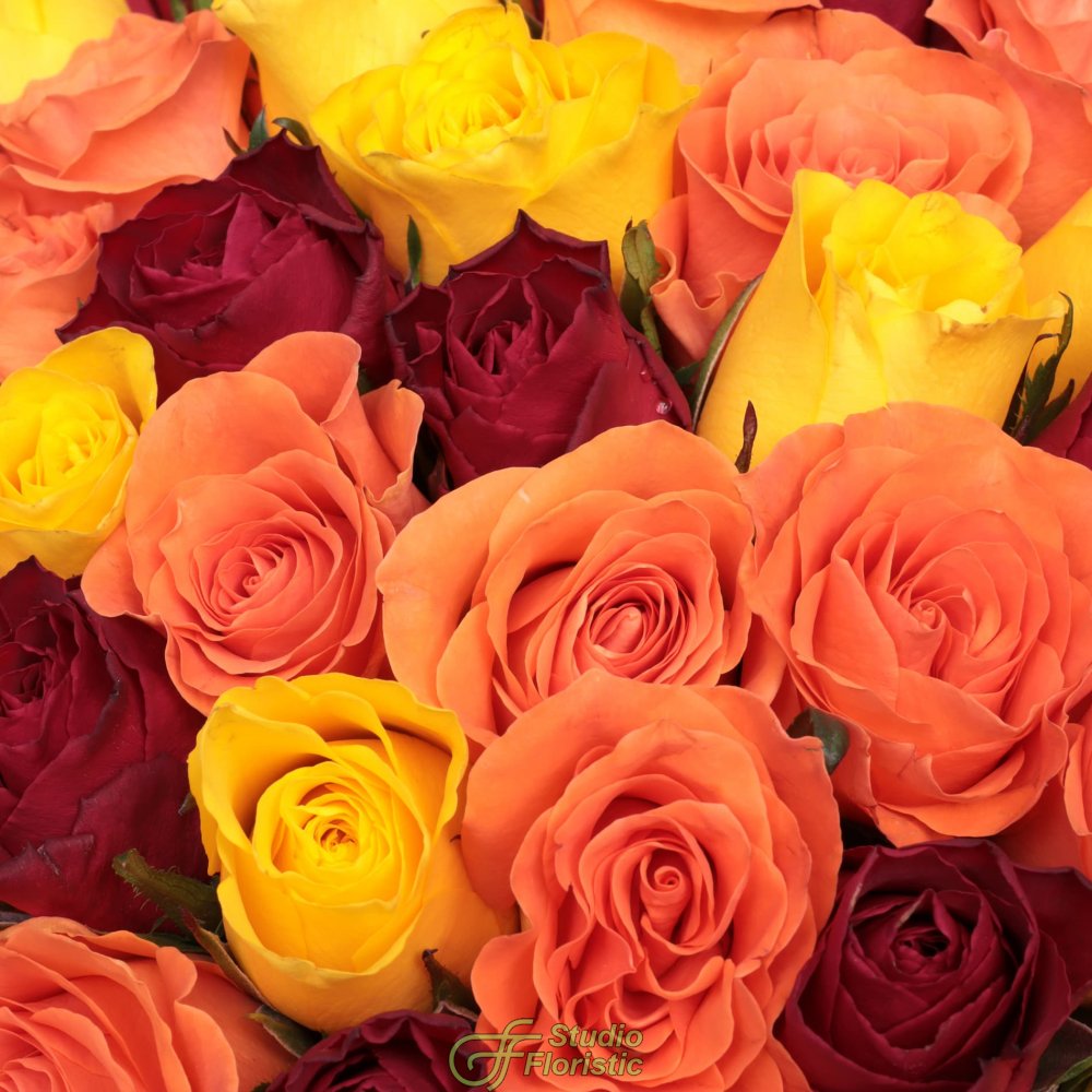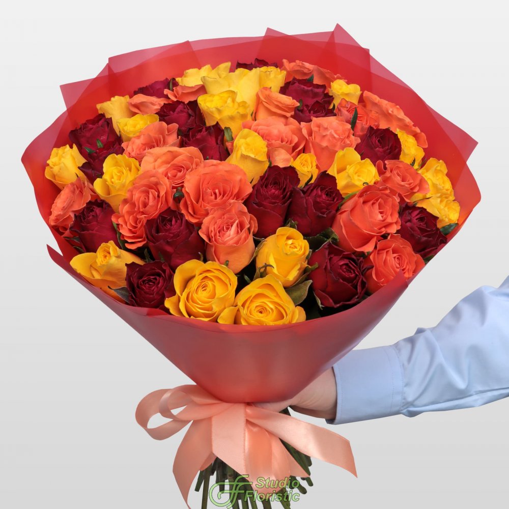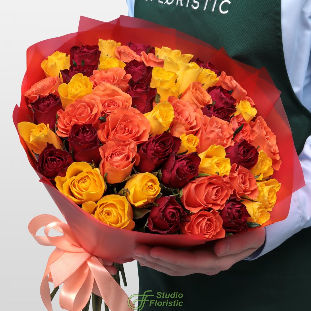Букет из желто-красных Роз Кения 40 см 51 шт «Пламенный микс»