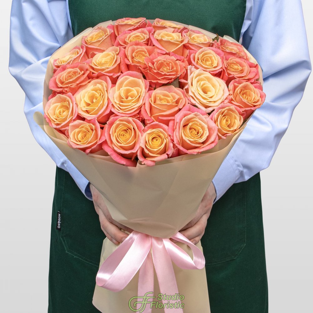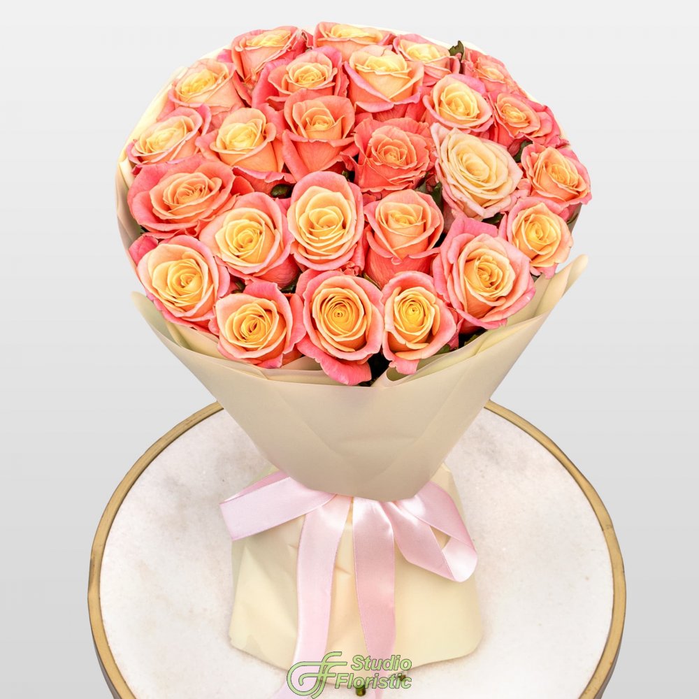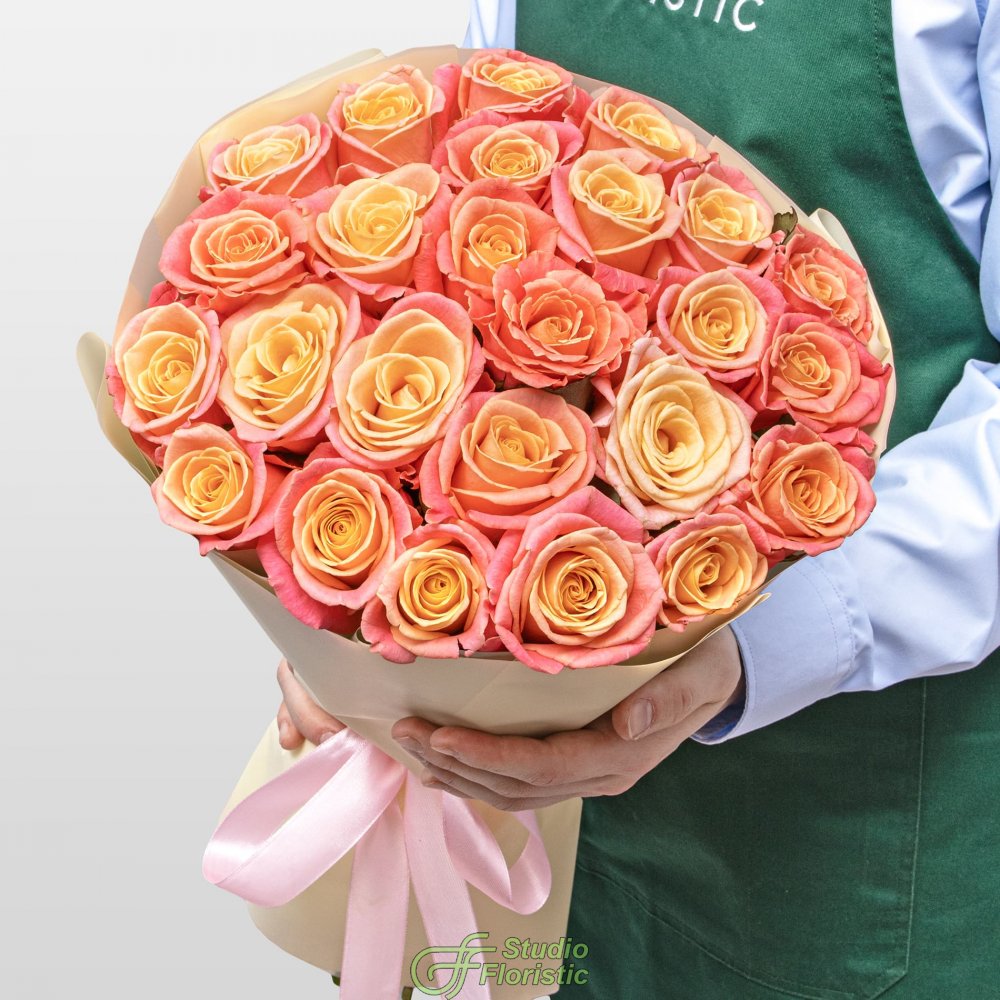 Букет из Роз Мисс Пигги 25 шт «Калифорнийский Закат»