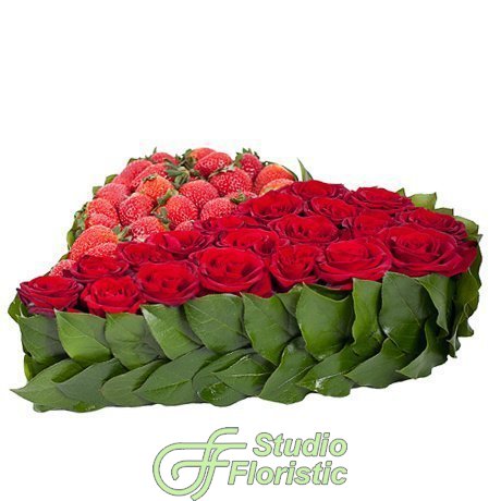 Композиция из Роз и Клубники «Клубничная страсть»