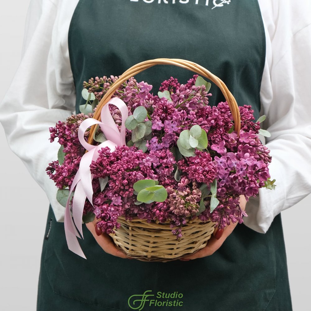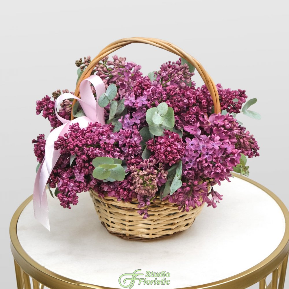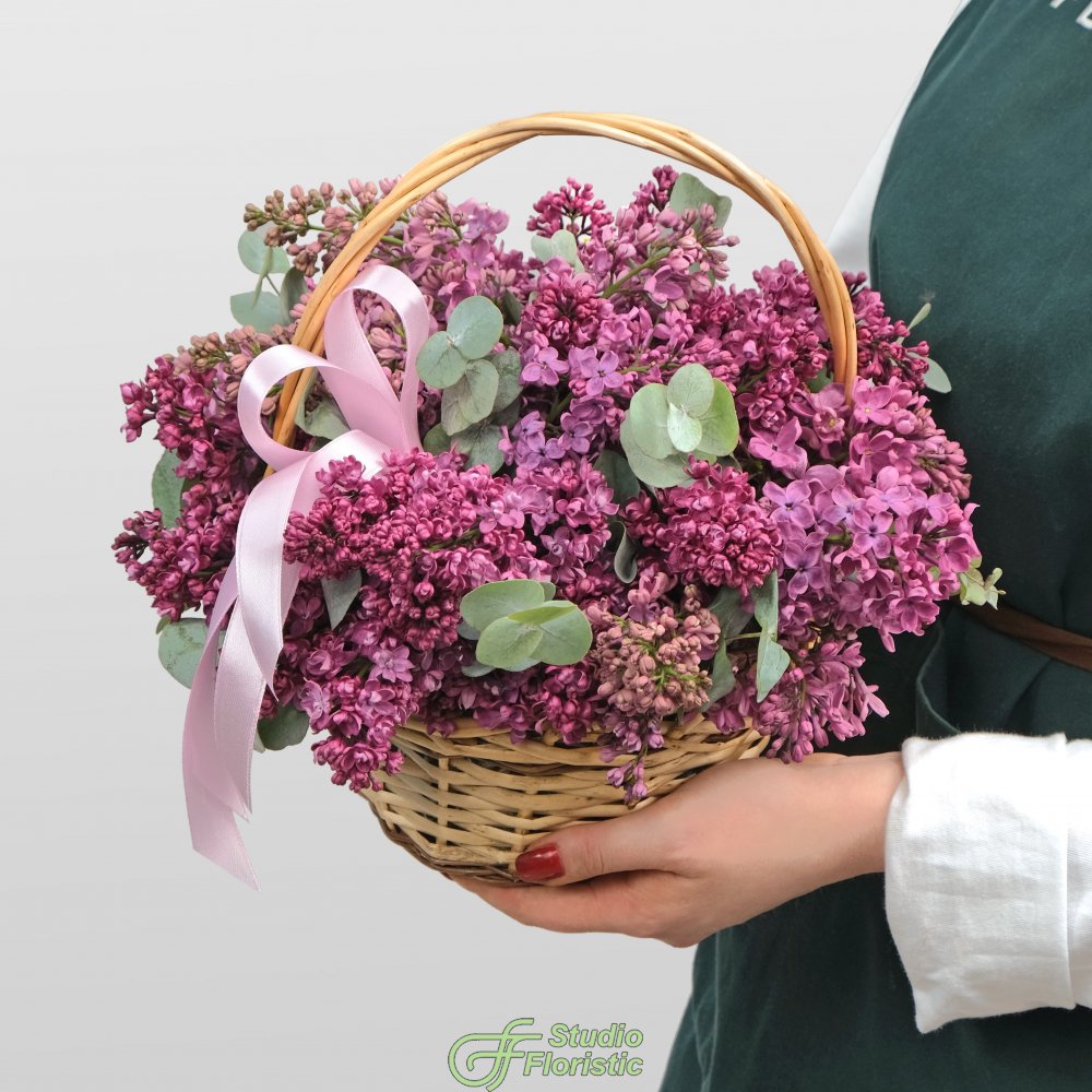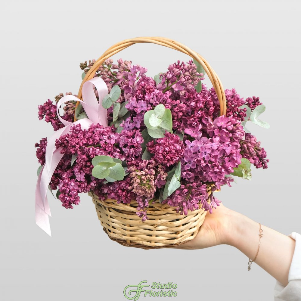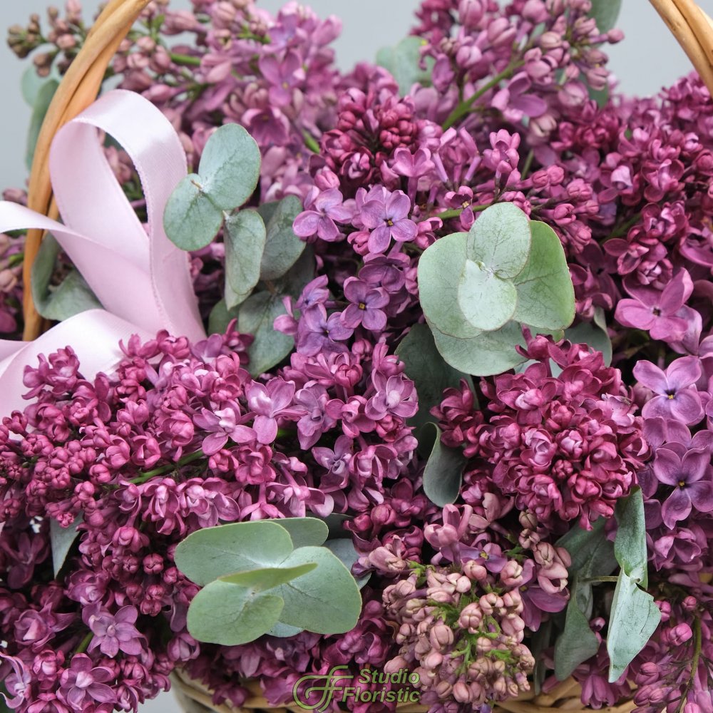 Композиция из Сирени «Корзинка счастья» с эвкалиптом