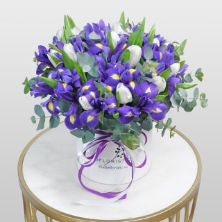 Ирис (19шт.); Тюльпан (14шт.); Эвкалипт; Коробка; Оазис; Лента | 5599 | 8699 |