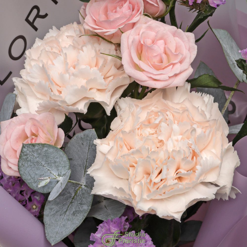 Букет из Кустовой Розы и Гвоздик «Юная весна»