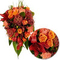Если вы хотите признаться в своих пылких и пламенных чувствах к самой прекрасной и удивительной женщине, то подарите ей свое сердце… сердце, полное огня и страсти. Яркий и восхитительный букет «Сердце огня» будет тем самым воплощением всех бурных чувств, что могут одолевать влюбленных. Цветы так и полыхают своей красотой в этой свадебной композиции.