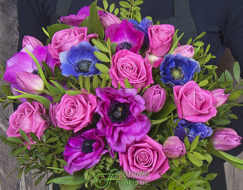 Букет из Анемонов, Роз и Тюльпанов «Забота о тебе»