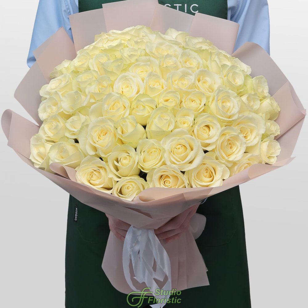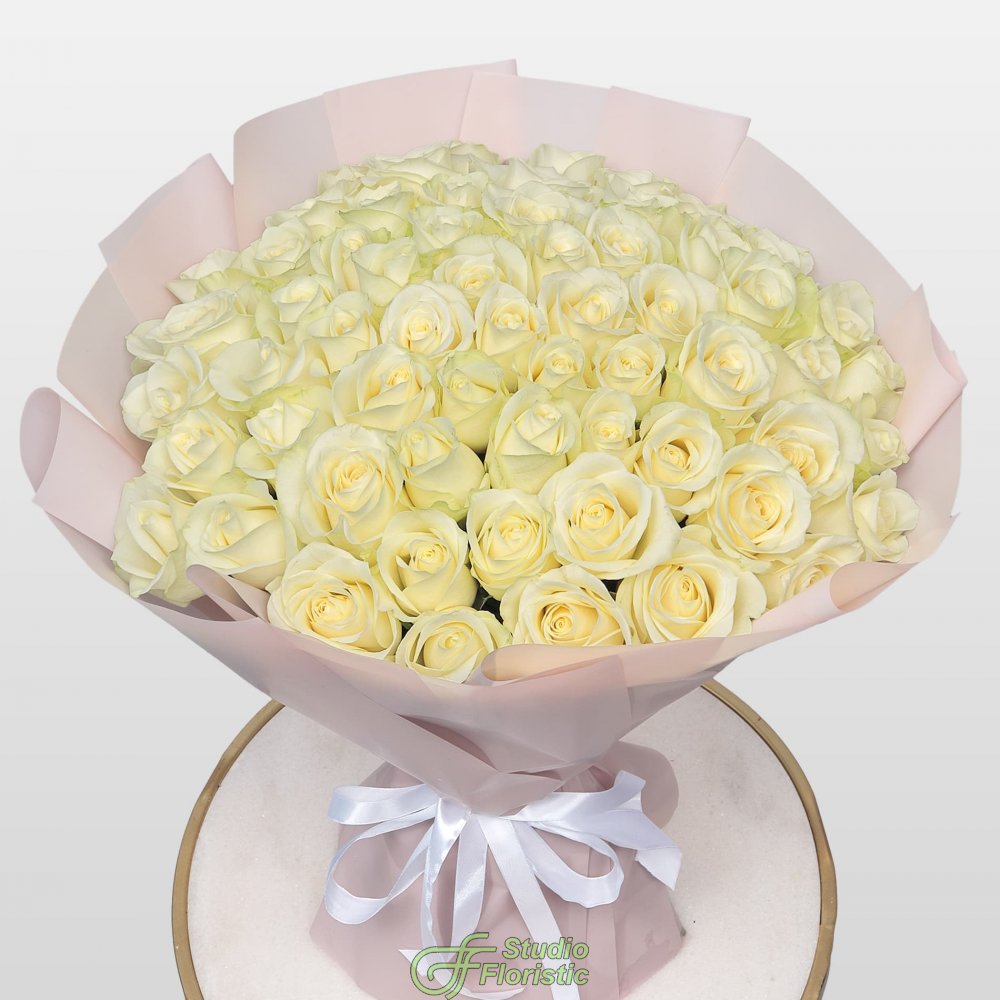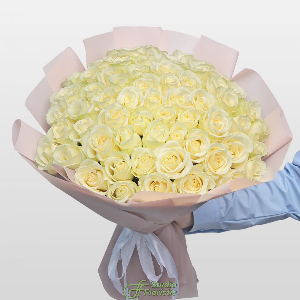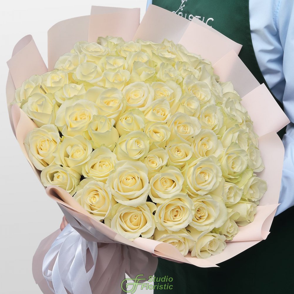 Букет из Роз Кения 60 см 61 шт «Лунное сияние»
