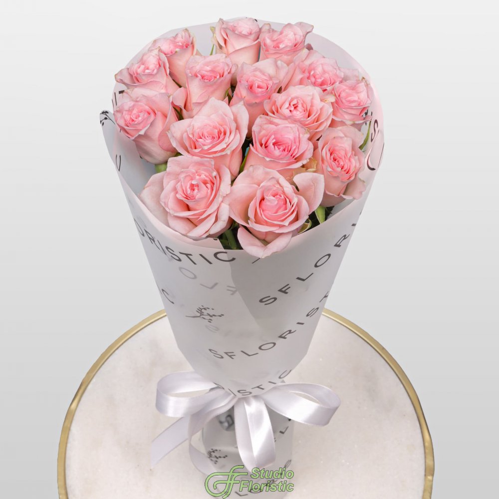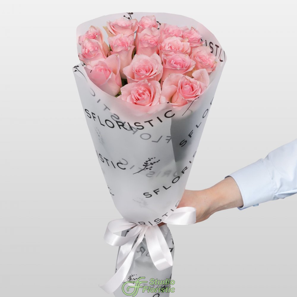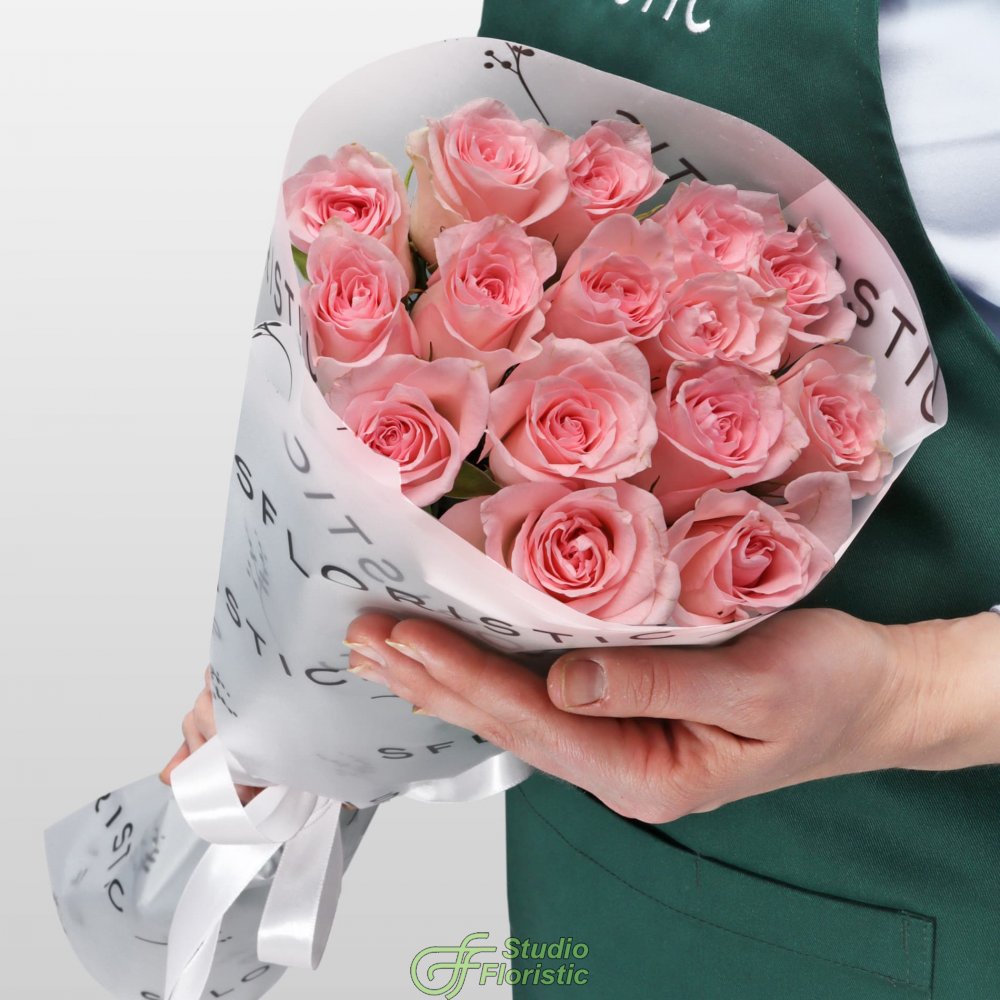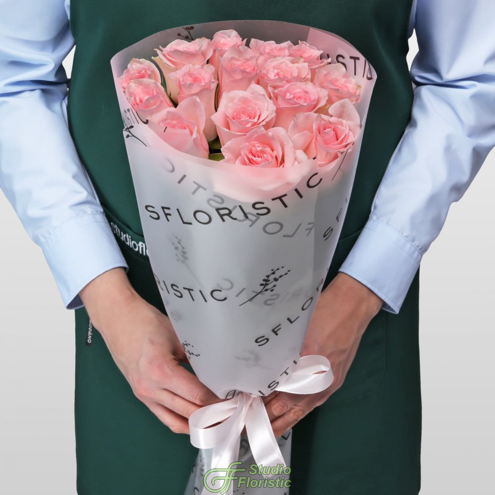 Букет из нежно-розовых Роз Кения 60 см 15 шт «Розовый сорбет»