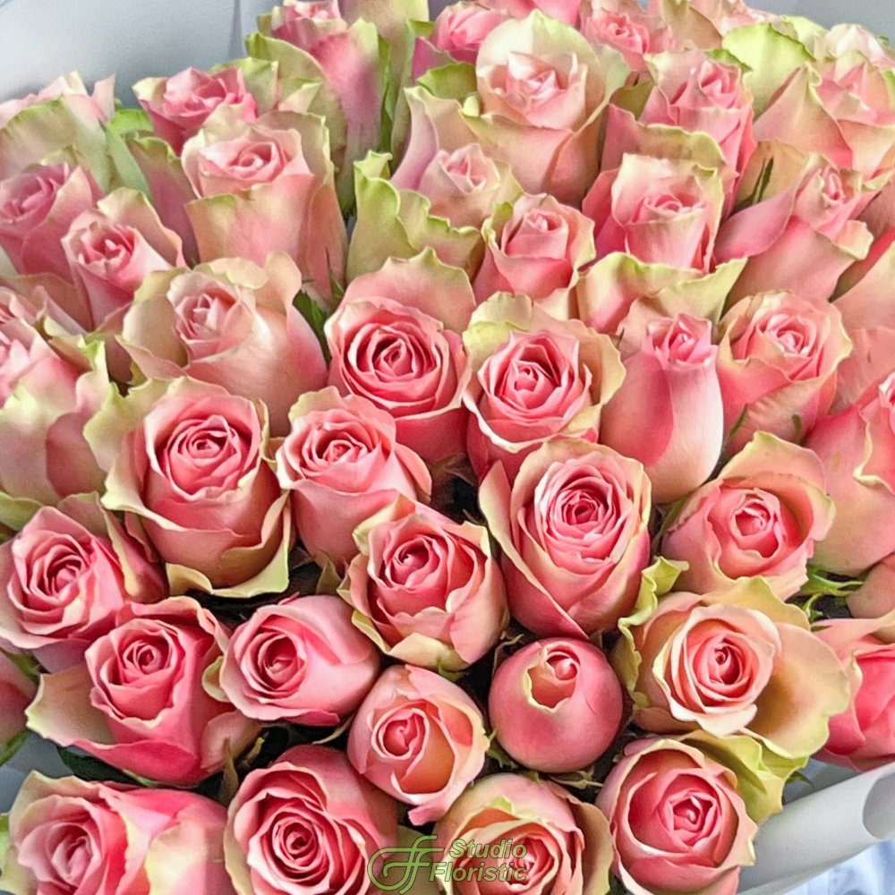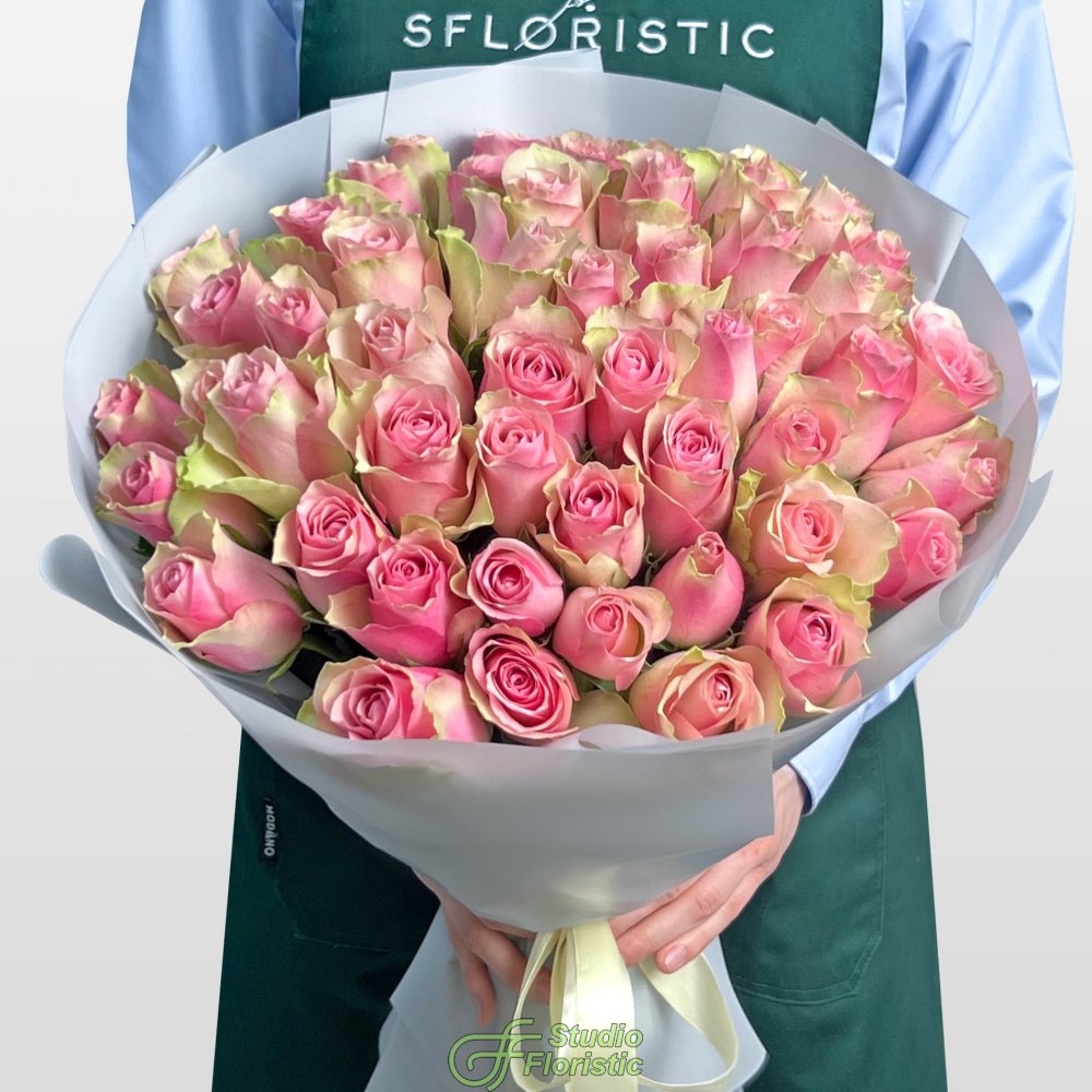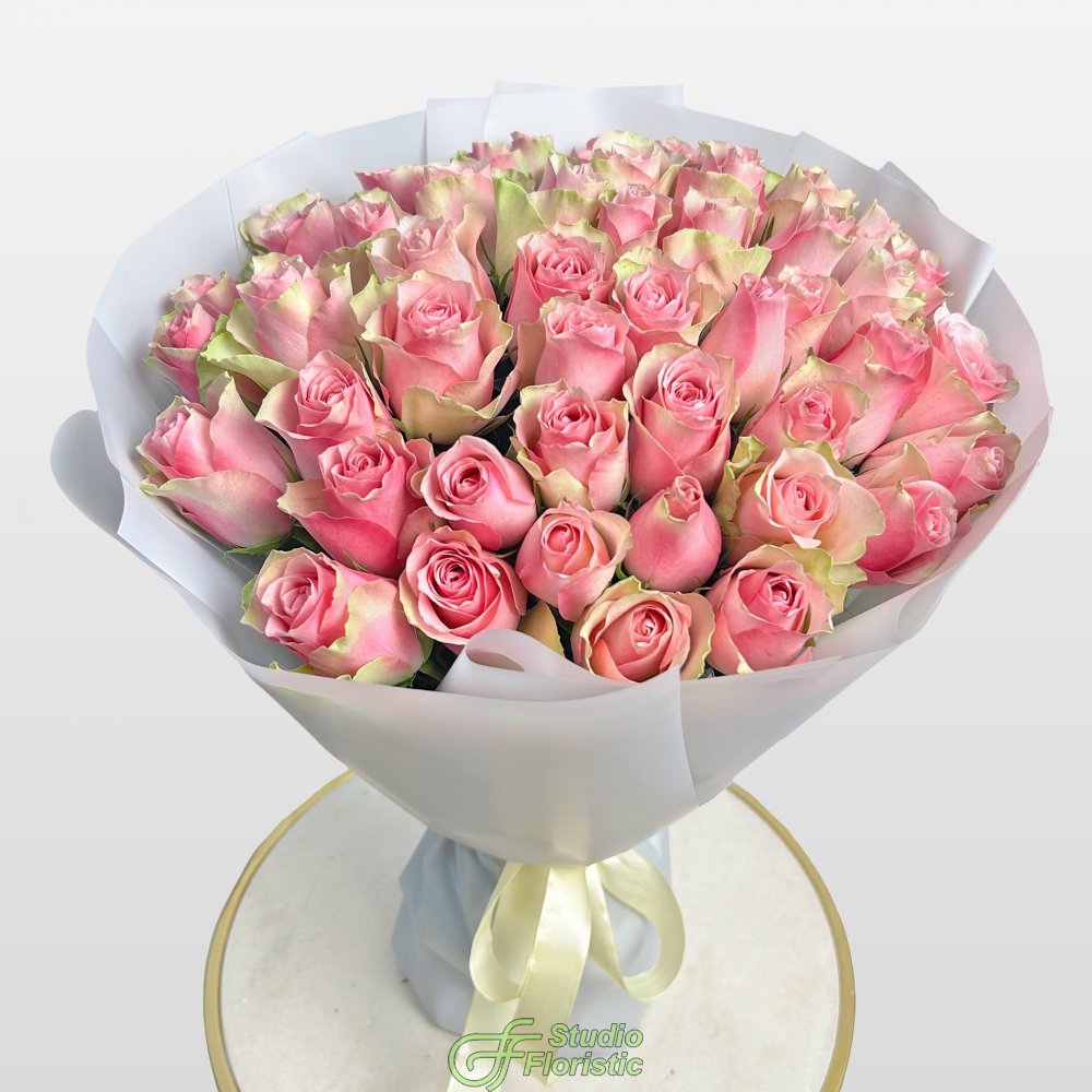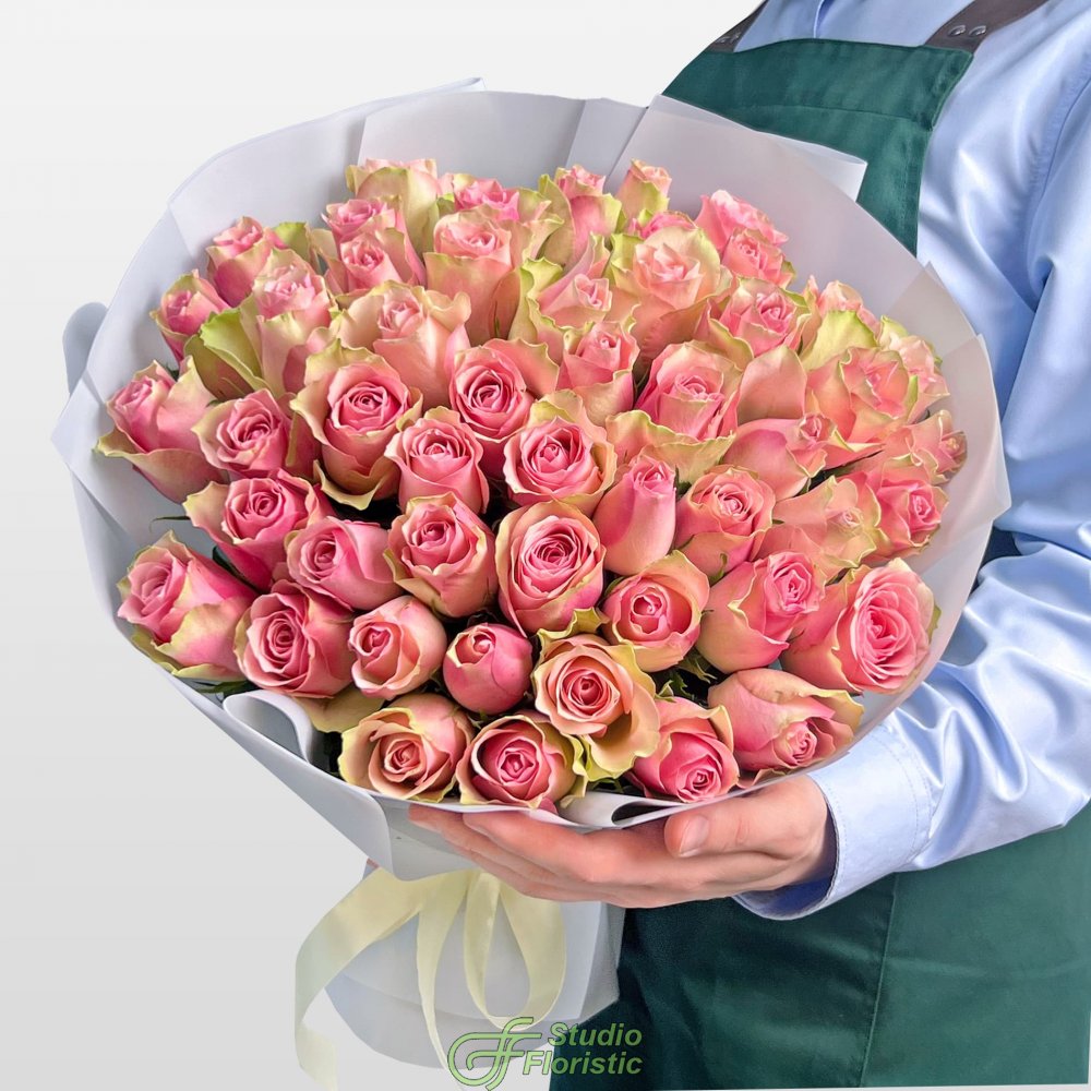 Букет из розовых Роз Кения 60 см 51 шт «Свежесть Эдема»
