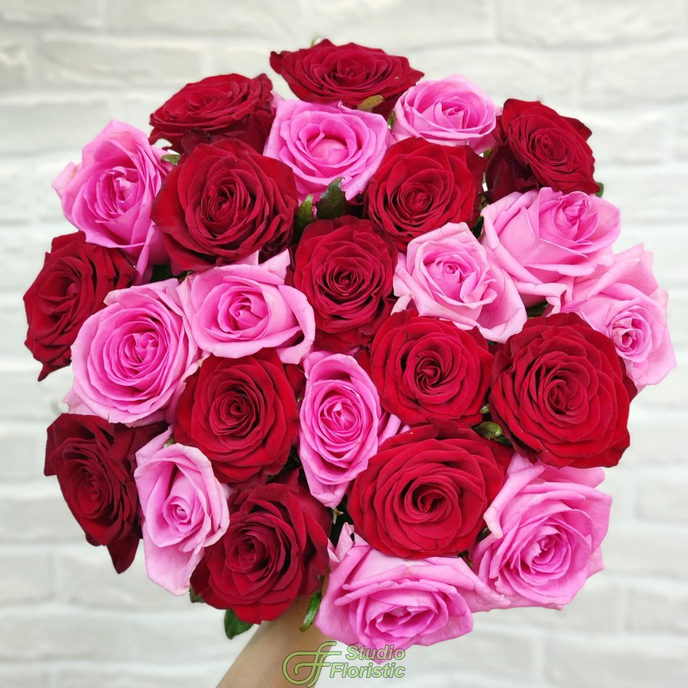 Букет из Роз «Микс красно-розовый» под ленту 60 см