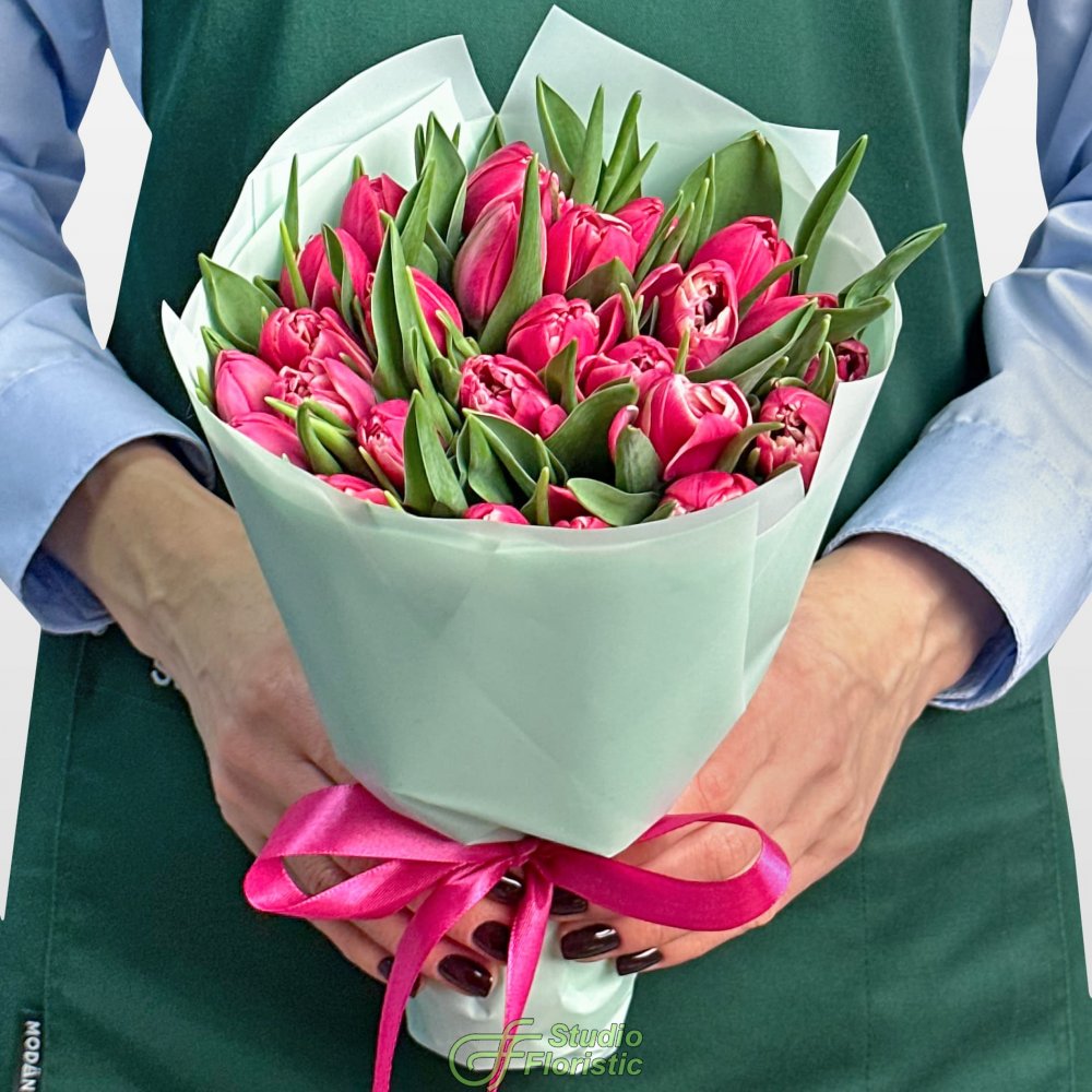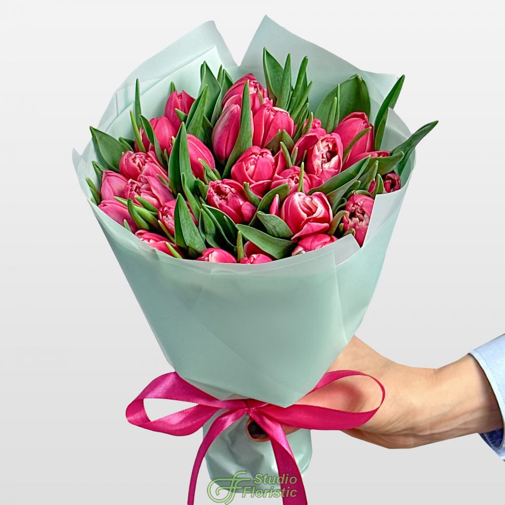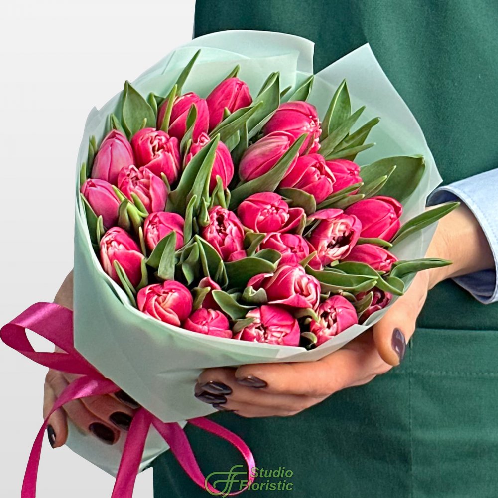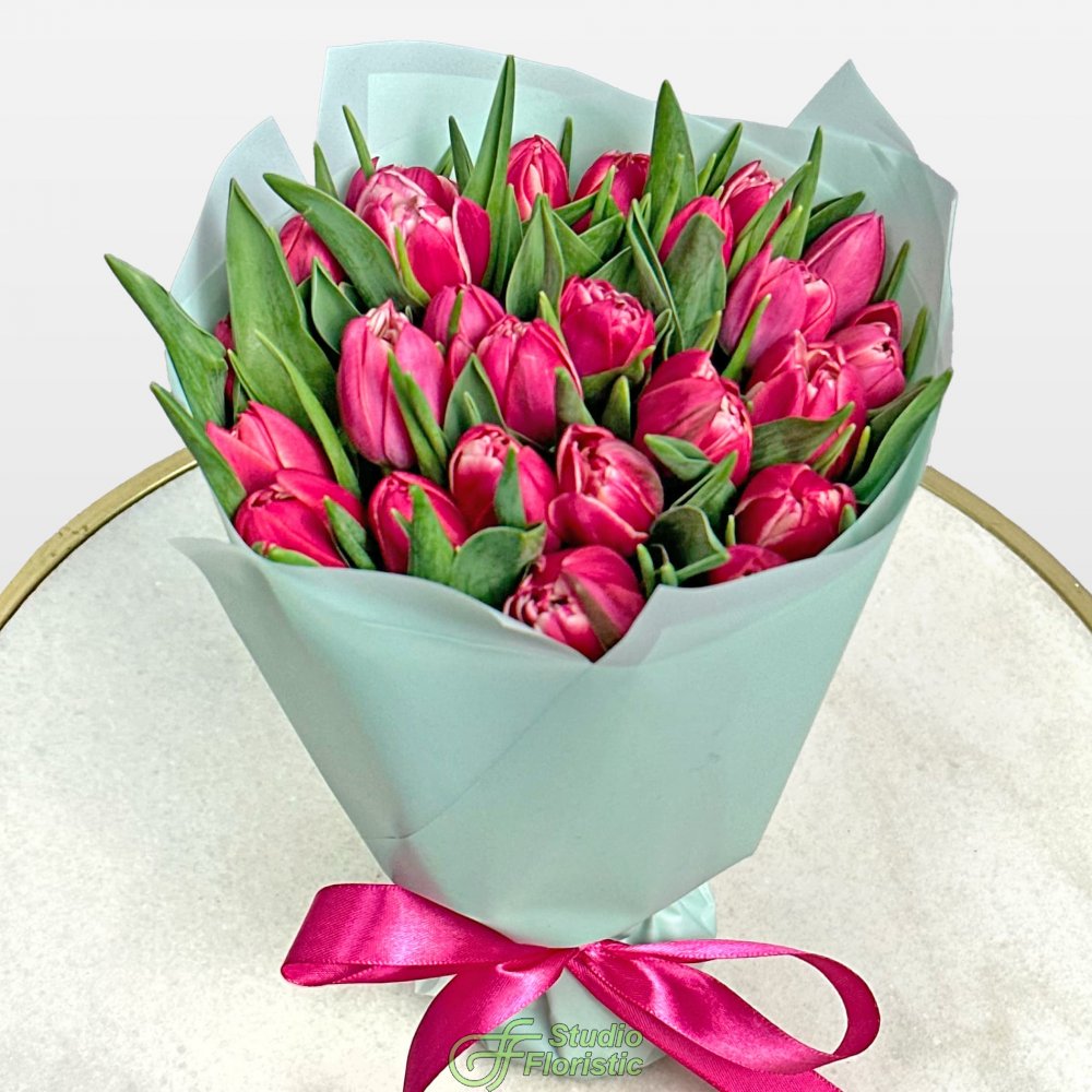 Букет из малиновых Тюльпанов 25 шт «Кардинал»
