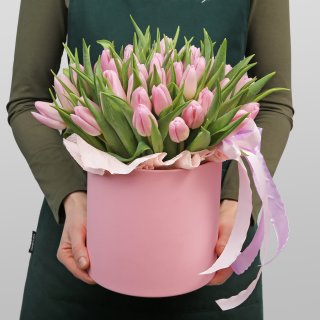 Тюльпаны (51шт.); Шляпная коробка; Тишью; Атласная лента | 8099 | 13349 |